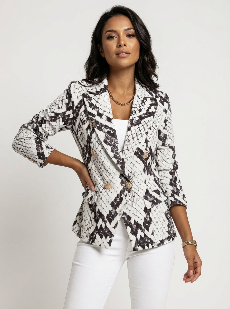Geprinte dames blazer met dubbele knopen en moderne pasvorm – Isabelle