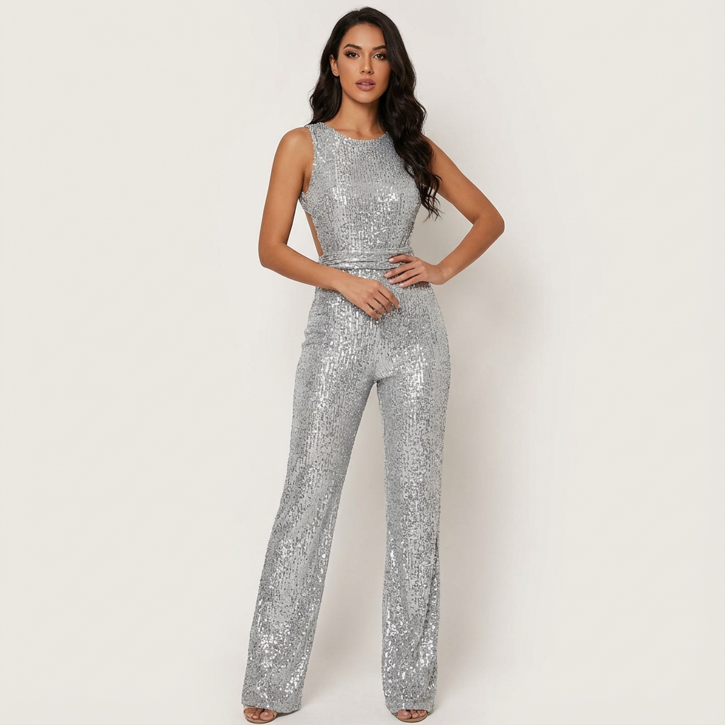 Een must-have jumpsuit die glamour en elegantie perfect combineert.