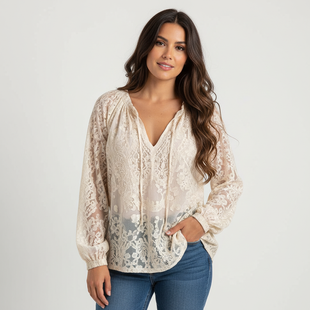 Een verfijnde kanten blouse die vrouwelijkheid en allure uitstraalt