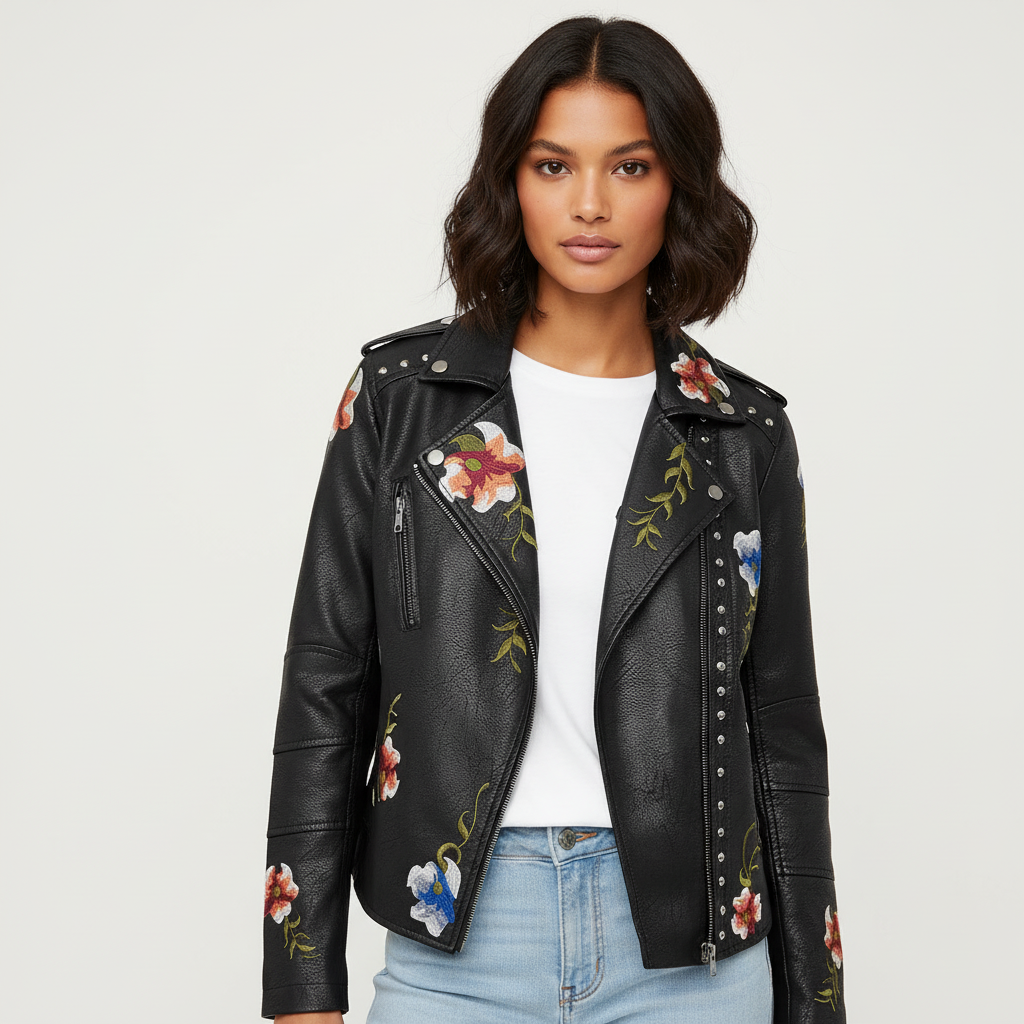 Floral geborduurde biker jas dames – Helena