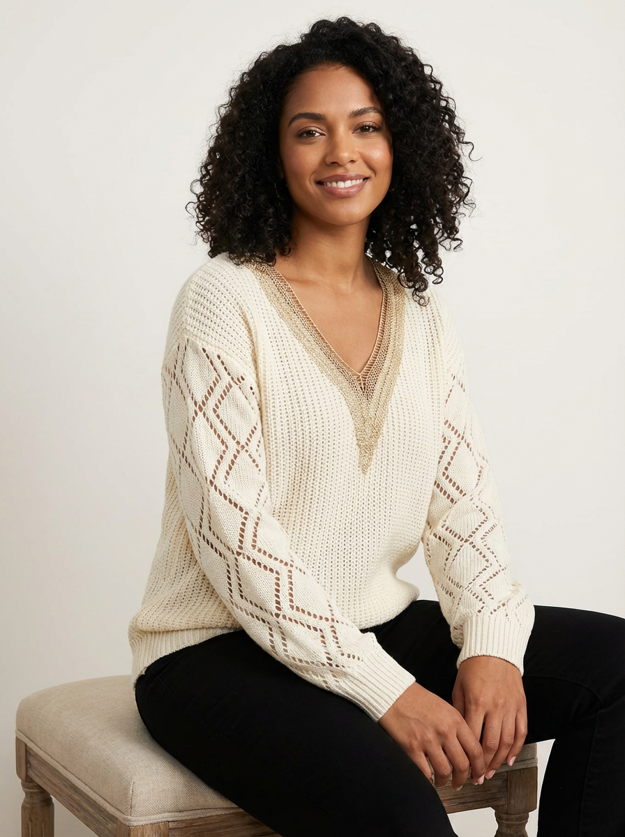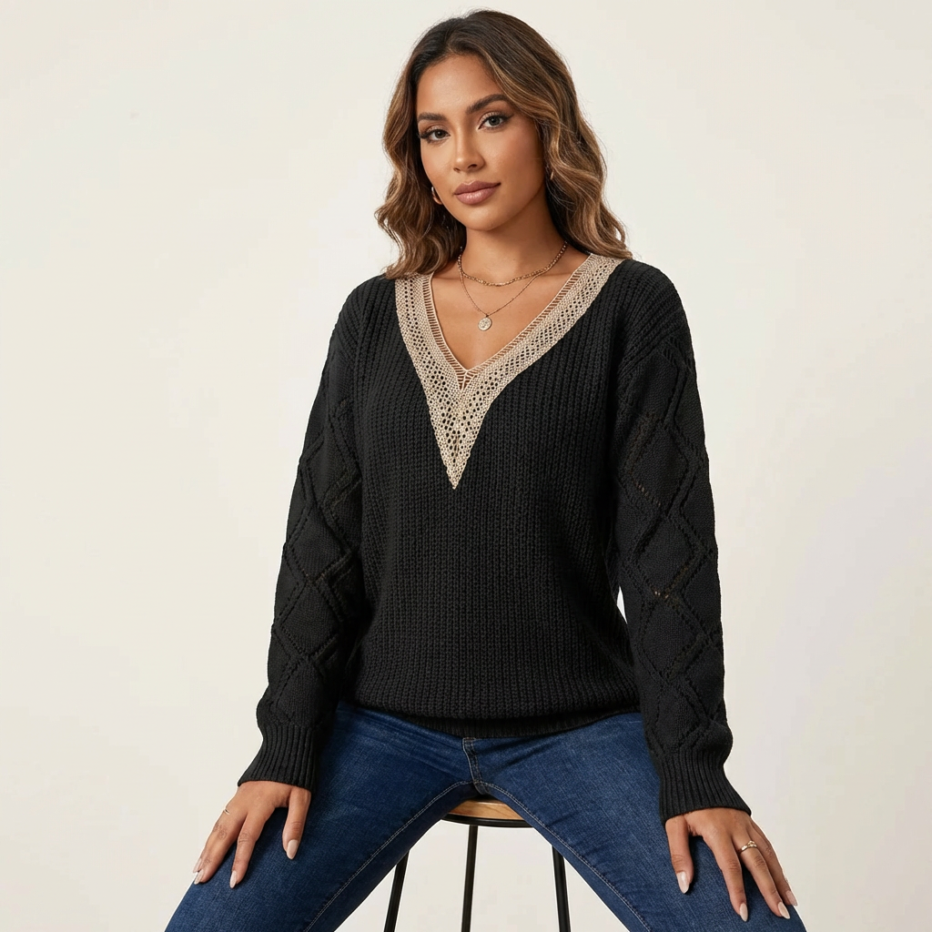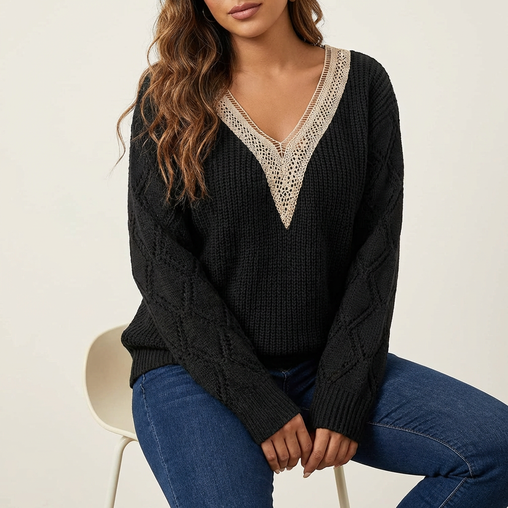Gehaakte v-hals trui met kantdetail – Hanna