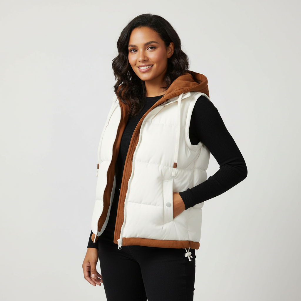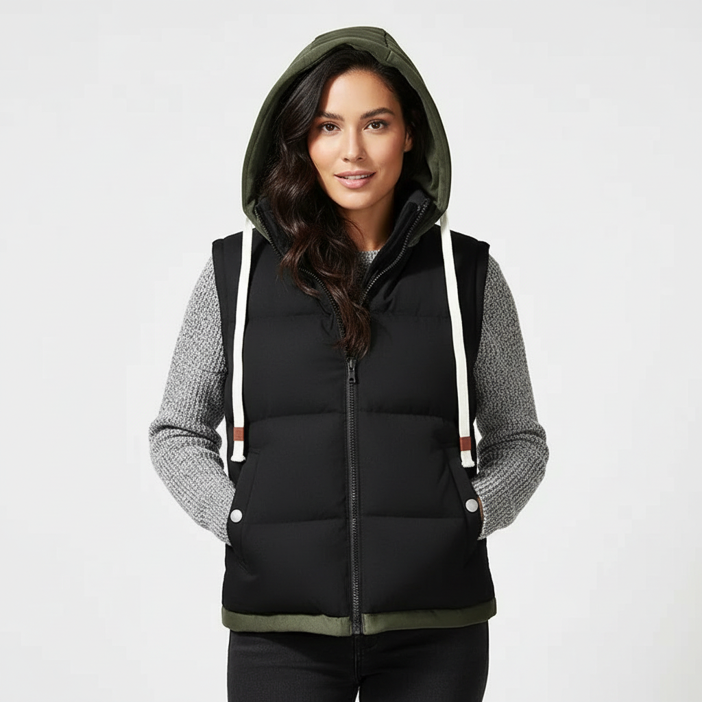Gevoerde dames bodywarmer met capuchon – Mara