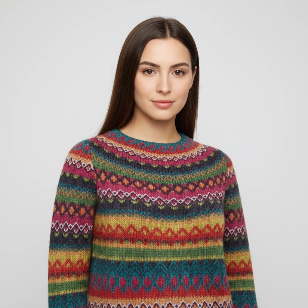 ✓ Meerkleurig patroon – speelse uitstraling met een warme, winterse vibe