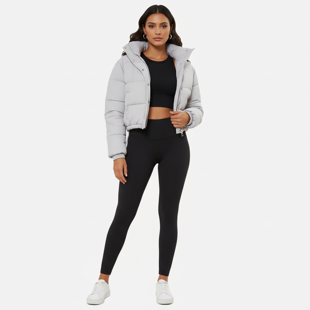 Deze korte pufferjas is ideaal voor vrouwen die houden van een sportieve, trendy look zonder in te leveren op warmte. Het gewatteerde ontwerp zorgt voor een comfortabel draaggevoel, terwijl de capuchon en de korte lengte een eigentijdse en krachtige uitstraling geven. Perfect voor dagelijks gebruik, casual outfits en actieve dagen.