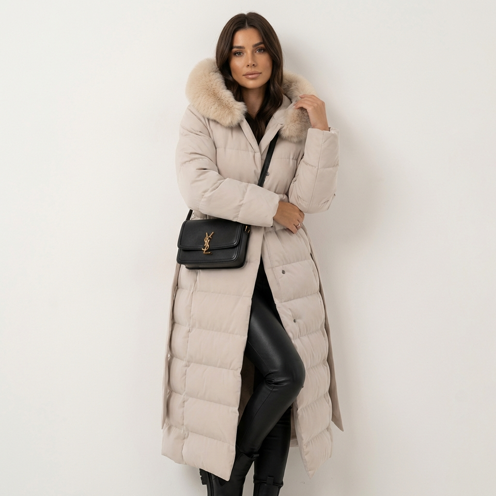 Deze lange winterjas straalt pure elegantie uit en is ontworpen voor vrouwen die stijlvol voor de dag willen komen, zelfs tijdens de koudste dagen. De flatterende lengte, de zachte faux fur capuchon en de subtiele tailleceintuur zorgen voor een vrouwelijk silhouet zonder in te leveren op comfort. Perfect voor dagelijks gebruik, maar ook chic genoeg voor een verzorgde winterlook.