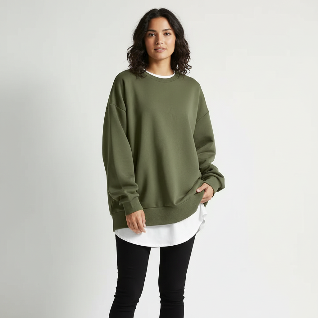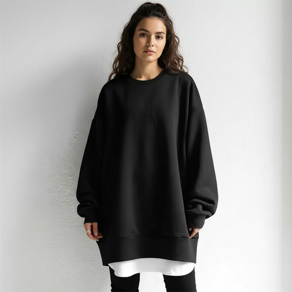 Deze oversized sweater is ontworpen voor vrouwen die houden van moeiteloos comfort met een moderne look. De ruime pasvorm valt losjes om het lichaam en geeft elke outfit een relaxte, eigentijdse uitstraling. Perfect voor casual dagen, thuiswerken of een stijlvolle off-duty look, zonder in te leveren op comfort.