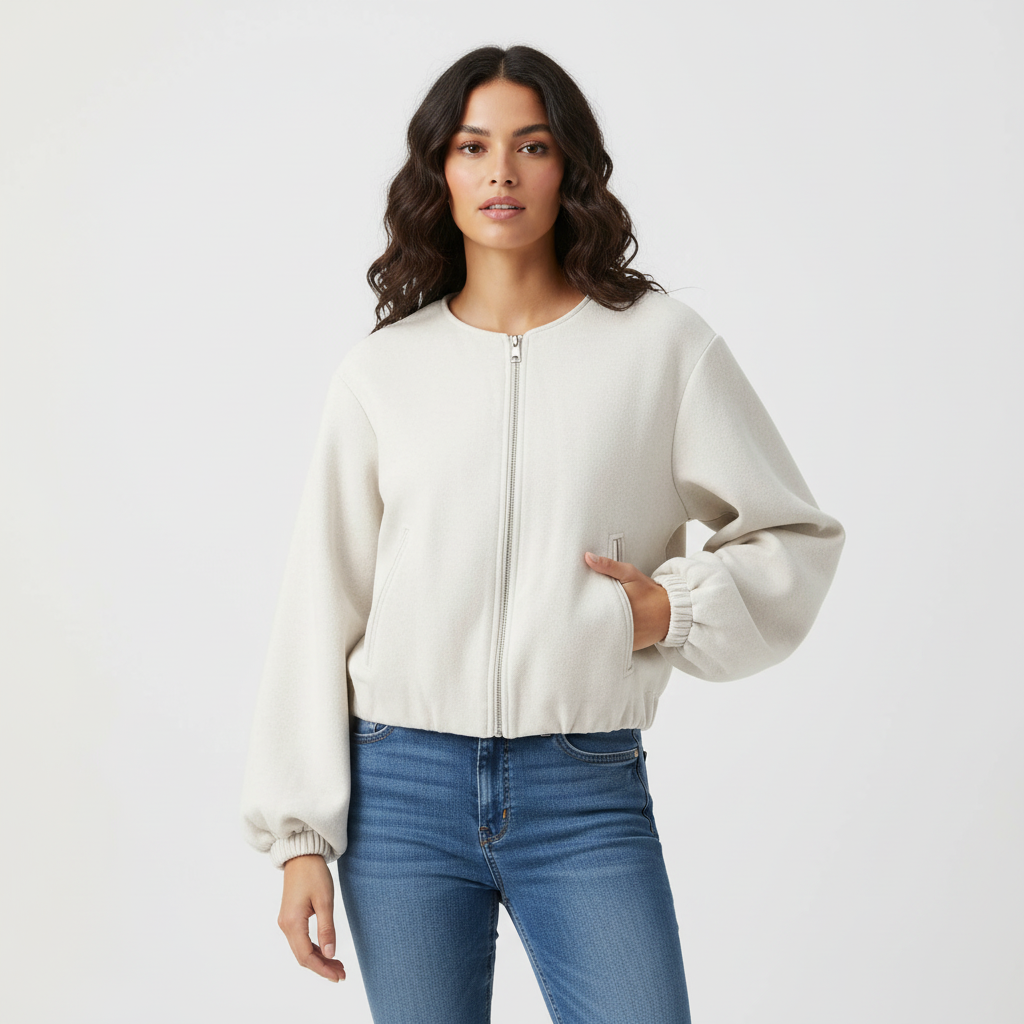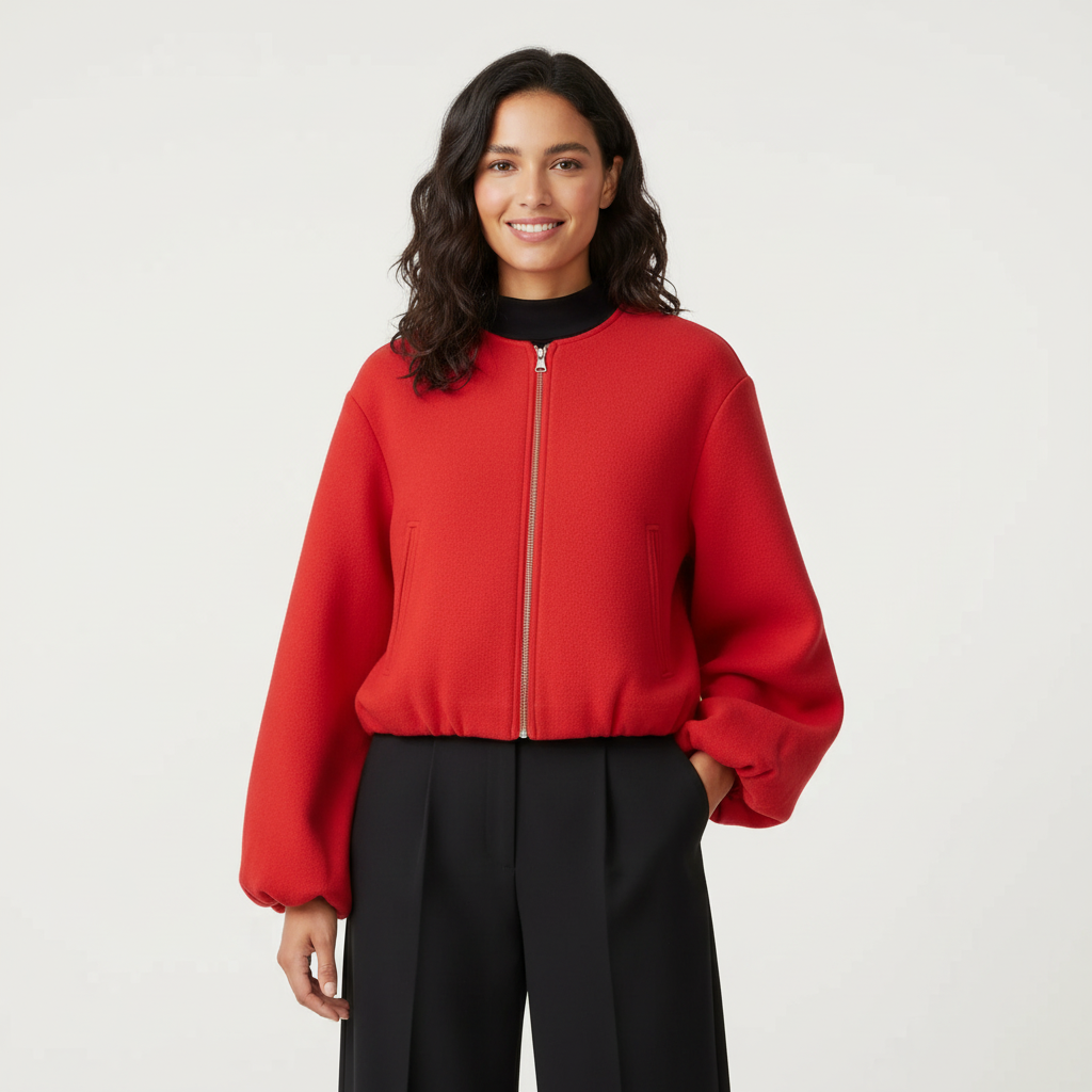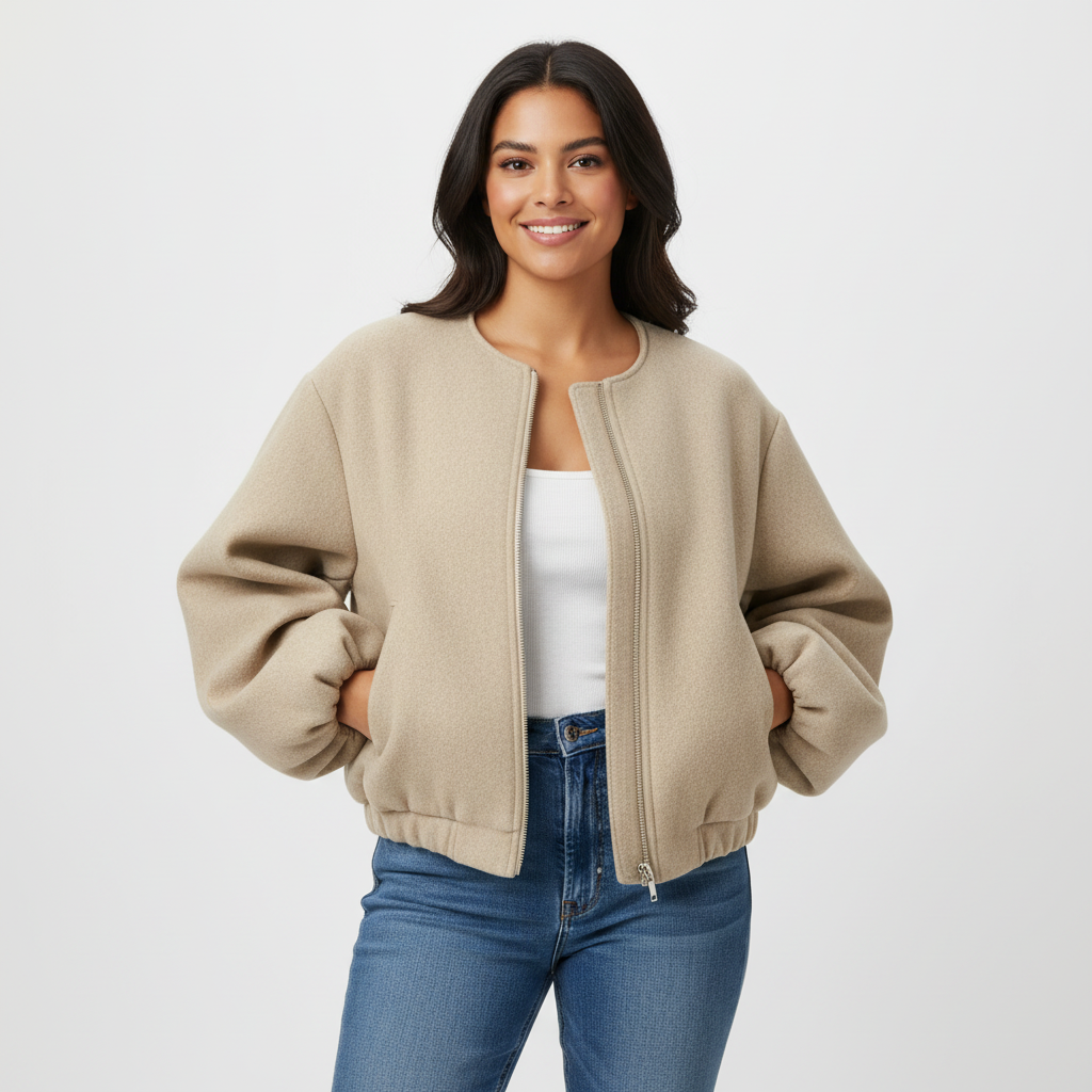 Dit ontwerp is gemaakt voor vrouwen die houden van een verzorgde, moeiteloze look met een moderne twist. De bomber valt soepel om het lichaam en voelt comfortabel aan, terwijl het minimalistische design zorgt voor een verfijnde uitstraling. Ideaal voor dagelijks gebruik, maar ook perfect om een eenvoudige outfit direct meer klasse te geven.