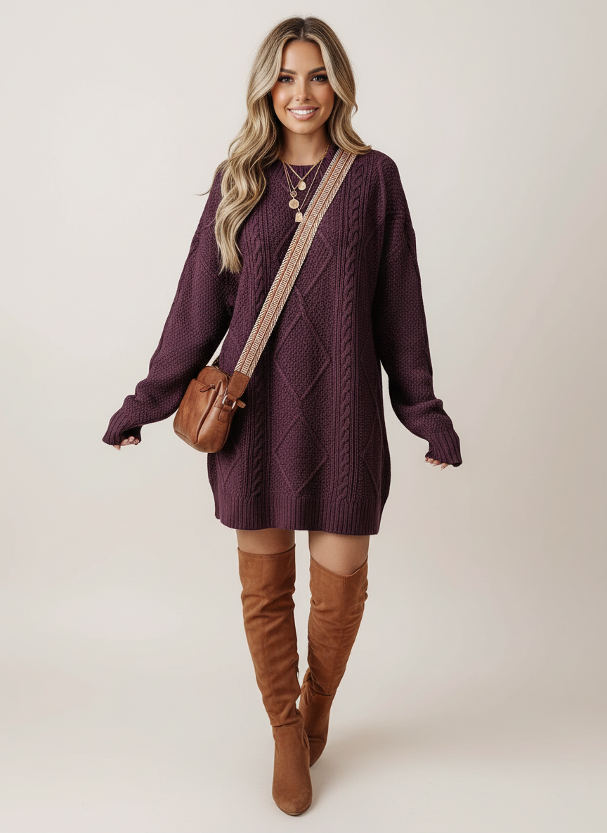 Stijlvolle dames trui jurk met kabelstructuur – Juno