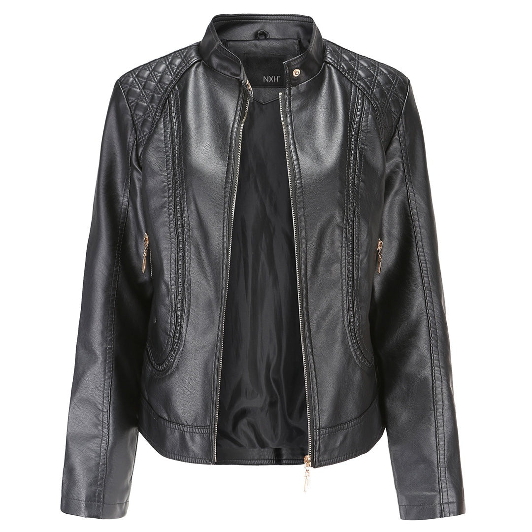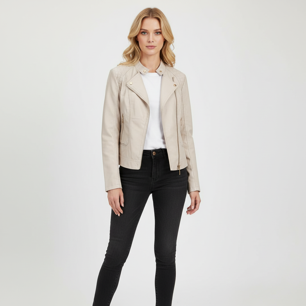 Een elegante leren jas die kracht en vrouwelijkheid samenbrengt