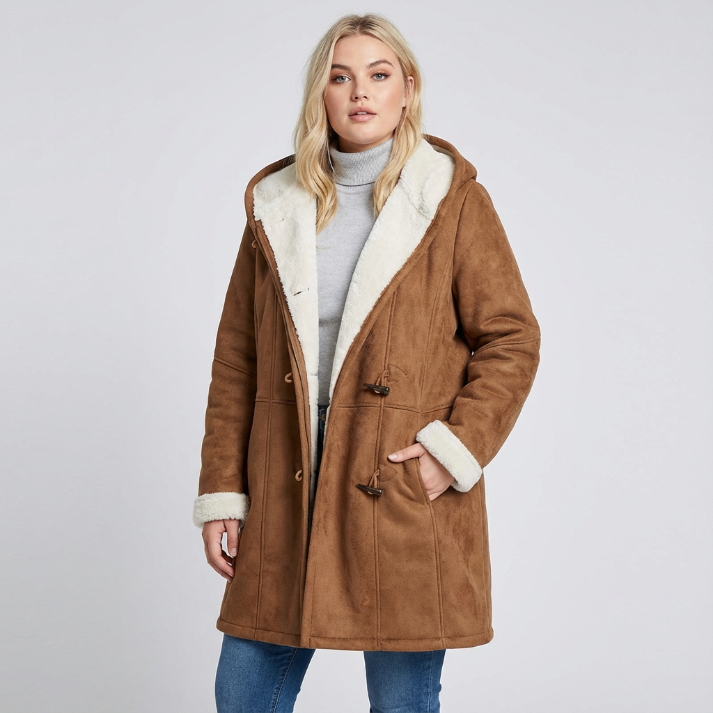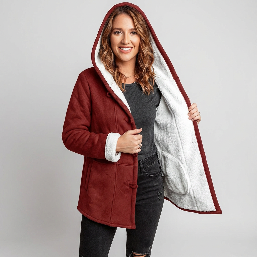 Deze jas heeft een klassieke, vrouwelijke uitstraling met een cosy twist. De zachte binnenvoering en de capuchon zorgen voor een behaaglijk gevoel op koude dagen, terwijl de toggle sluiting en het langere silhouet zorgen voor een stijlvolle, nonchalante look. Perfect voor dagelijks gebruik, wandelingen of een casual winteroutfit.