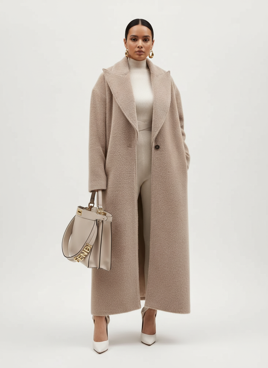 Een oversized jas die moeiteloos luxe en comfort uitstraalt.