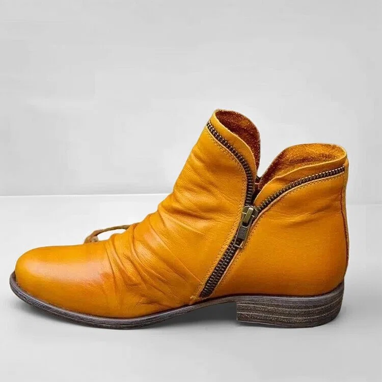 Trendy leren dames enkellaarsjes met ritssluiting