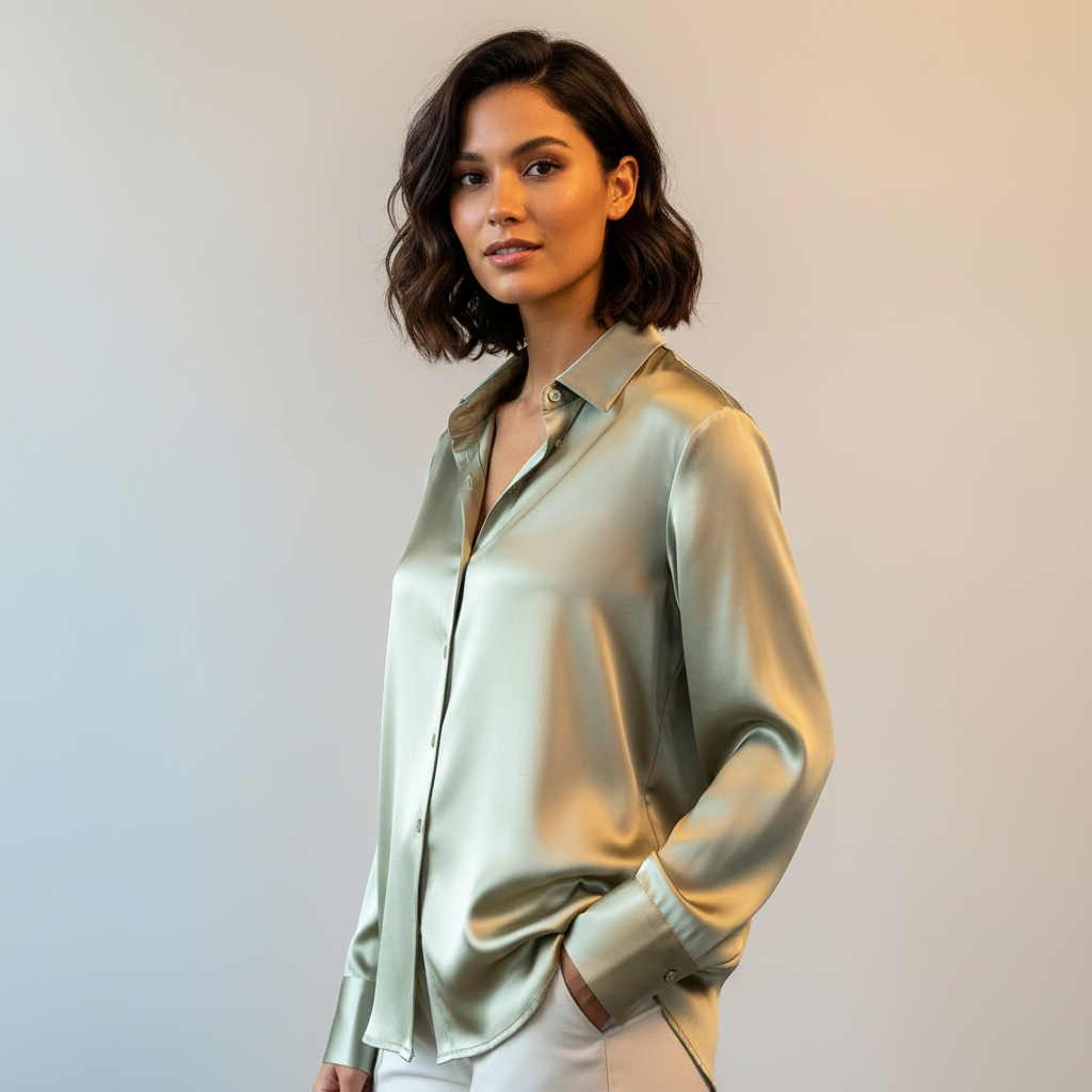 Een elegante blouse die luxe en eenvoud perfect samenbrengt.