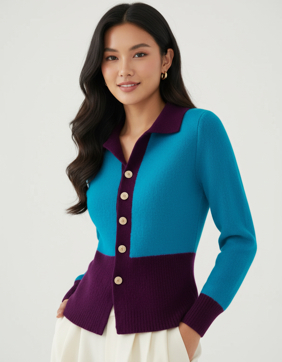 Dit vest brengt vrouwelijke klasse en modern comfort samen in één stijlvol ontwerp. De zachte knit voelt aangenaam aan en sluit mooi aan op het lichaam, waardoor je silhouet elegant wordt benadrukt. De contrasterende details geven een luxe touch die perfect past bij zowel dagelijkse looks als meer geklede momenten.