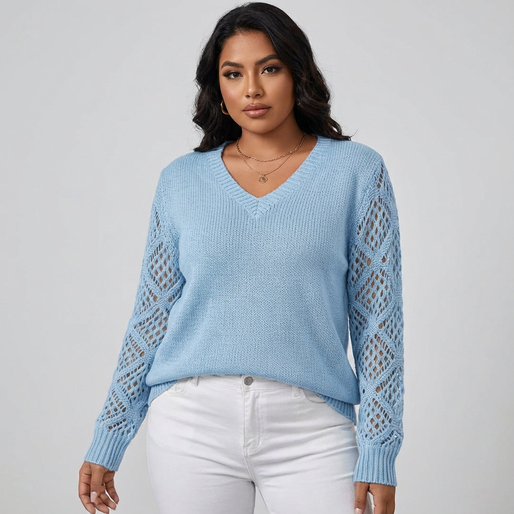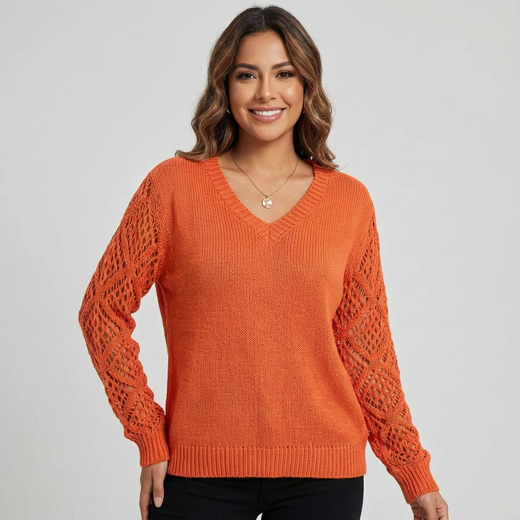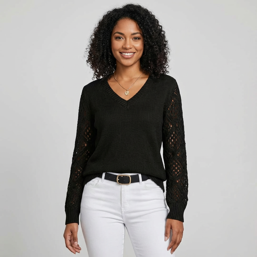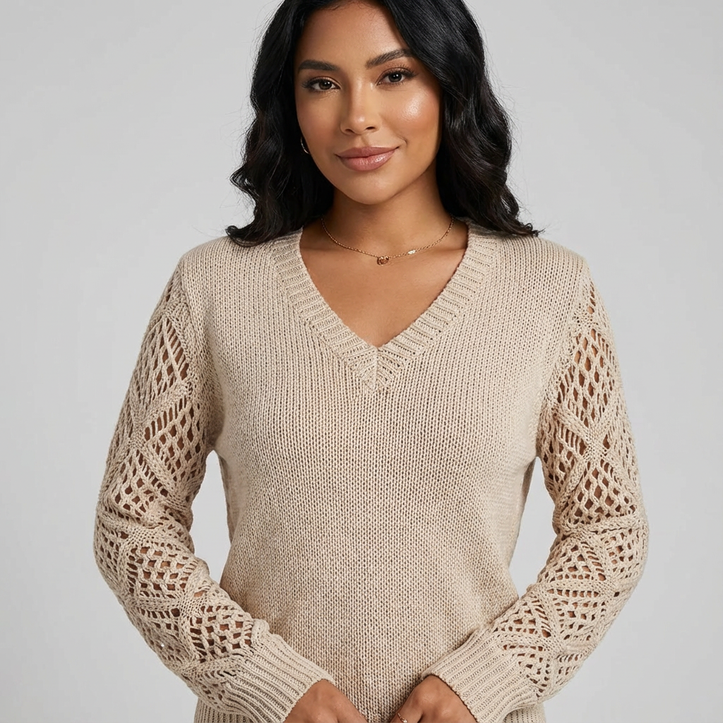 Opengewerkte mouwen – geven de trui een verfijnd en luchtig karakter