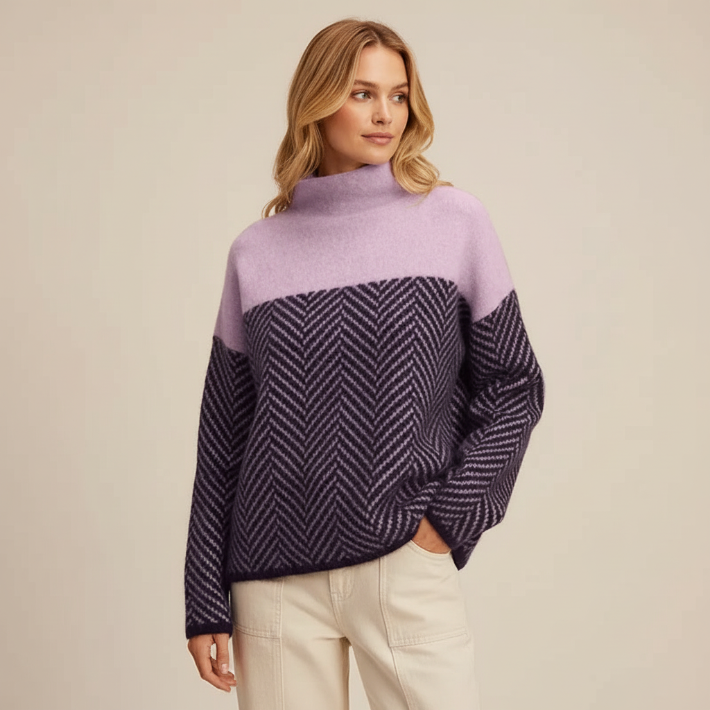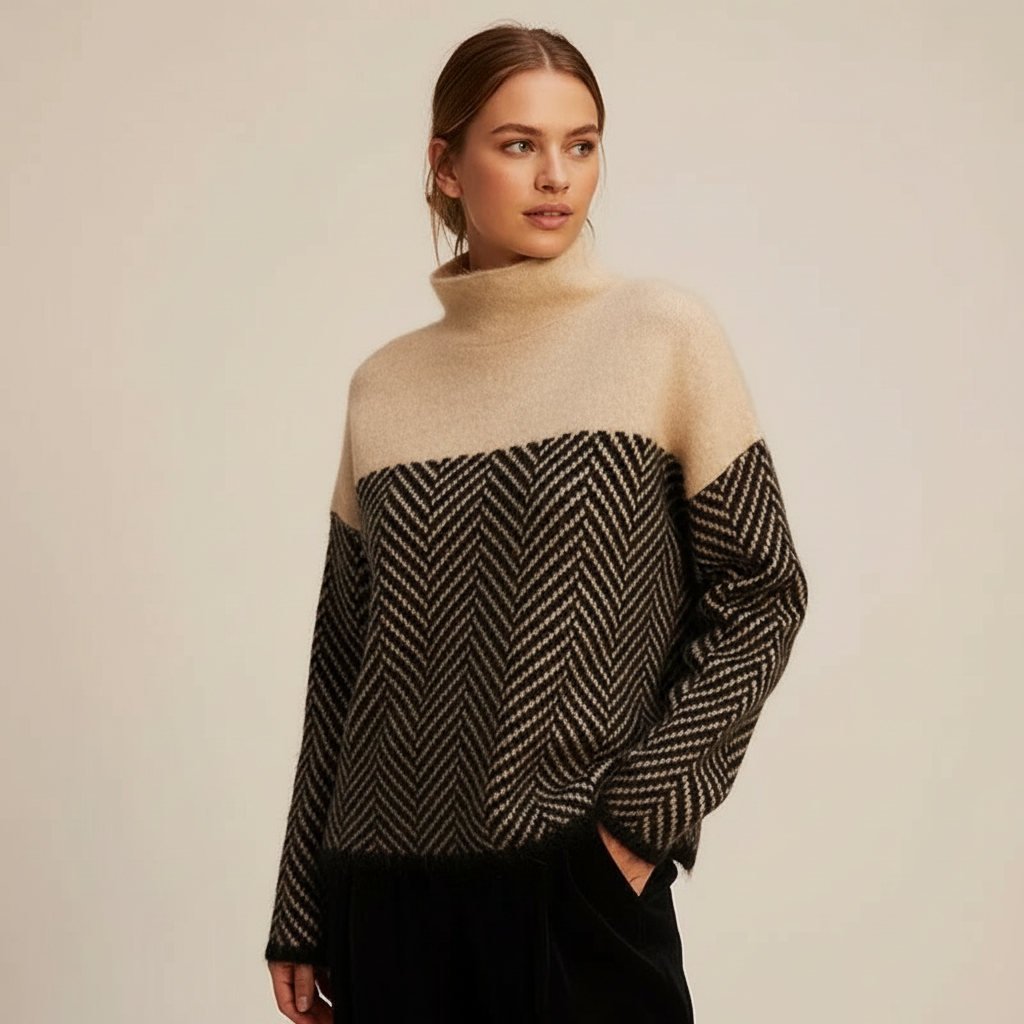 Gebreide trui met patroon en hoge kraag voor dames – Hanna