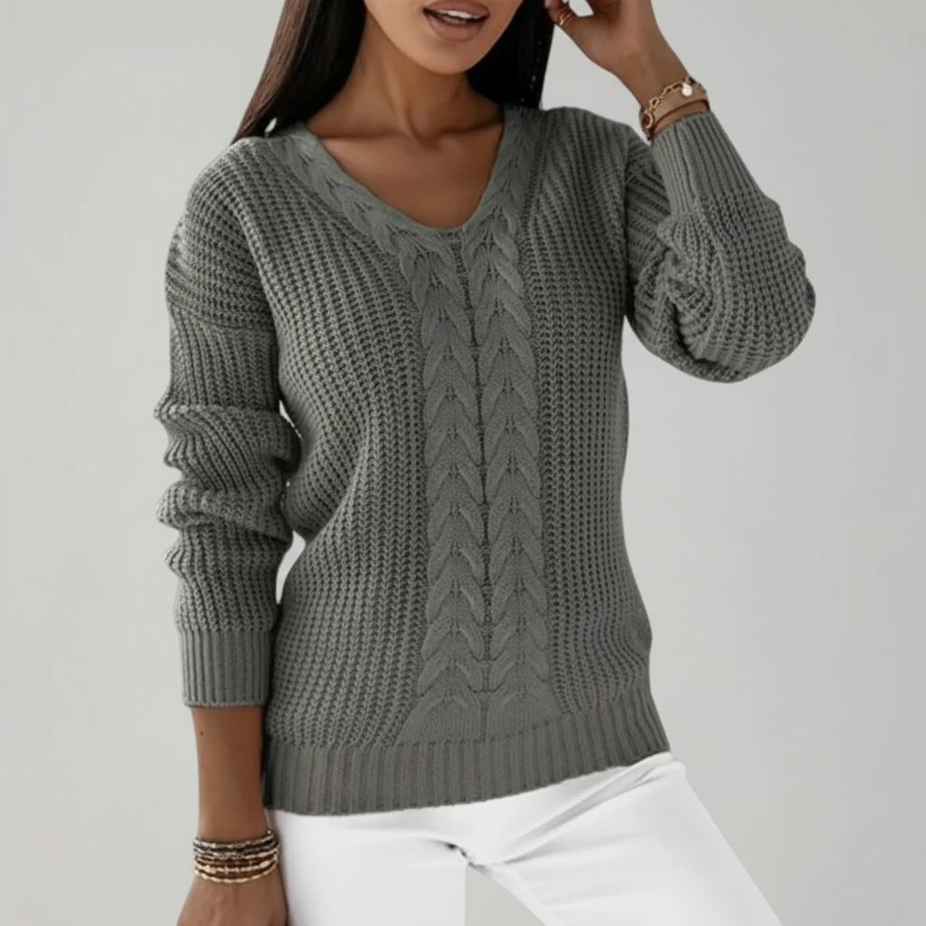 Gebreide trui met V-hals en structuurpatroon