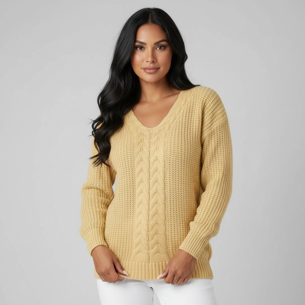 Deze gebreide trui is ontworpen voor een comfortabele en vrouwelijke uitstraling, met een verfijnd structuurpatroon dat het ontwerp net dat beetje extra geeft. De V-hals zorgt voor een open en flatterende look, terwijl de zachte knit prettig aanvoelt op de huid. Ideaal om los te dragen of te combineren met een basic top voor een gelaagde outfit. Geschikt voor dagelijks gebruik en makkelijk te stylen met jeans, pantalons of rokken.