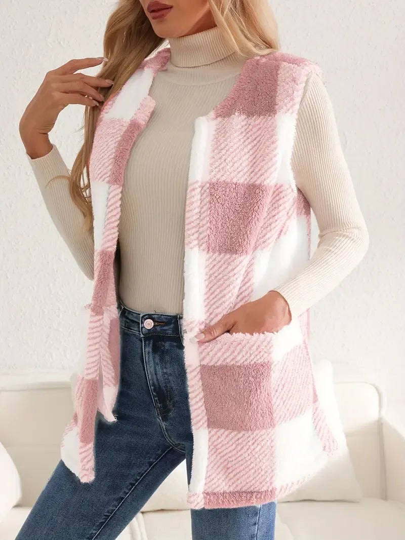 Geruit teddy dames vest met zakken – Everette