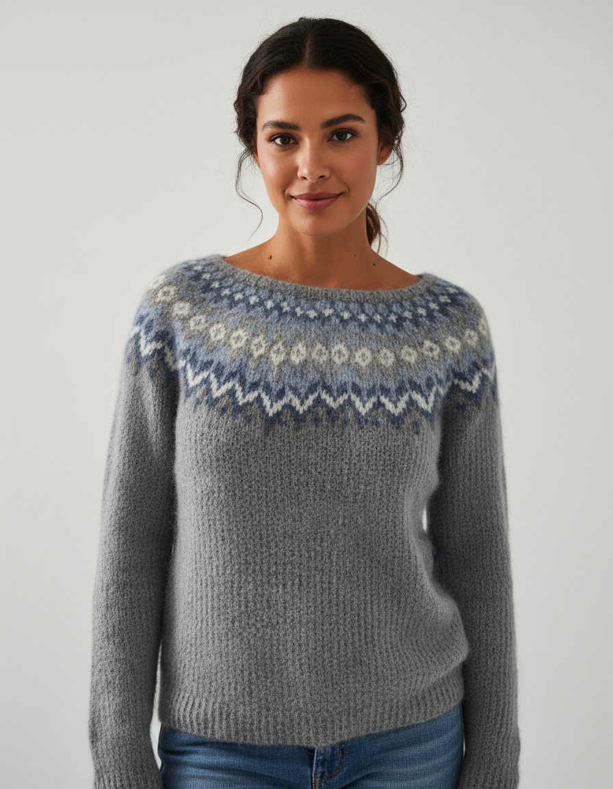 Noors gebreide dames trui met patroon – Elin