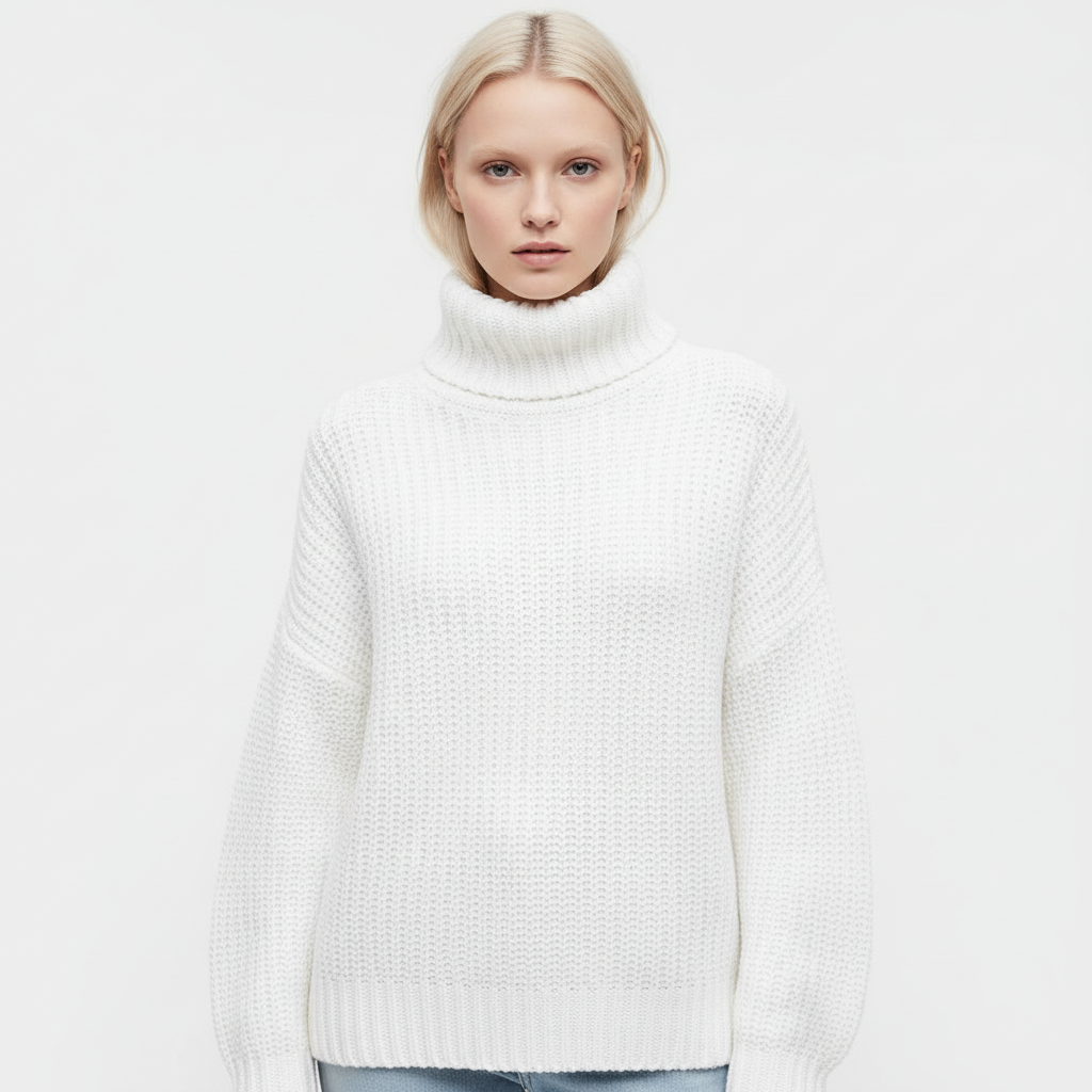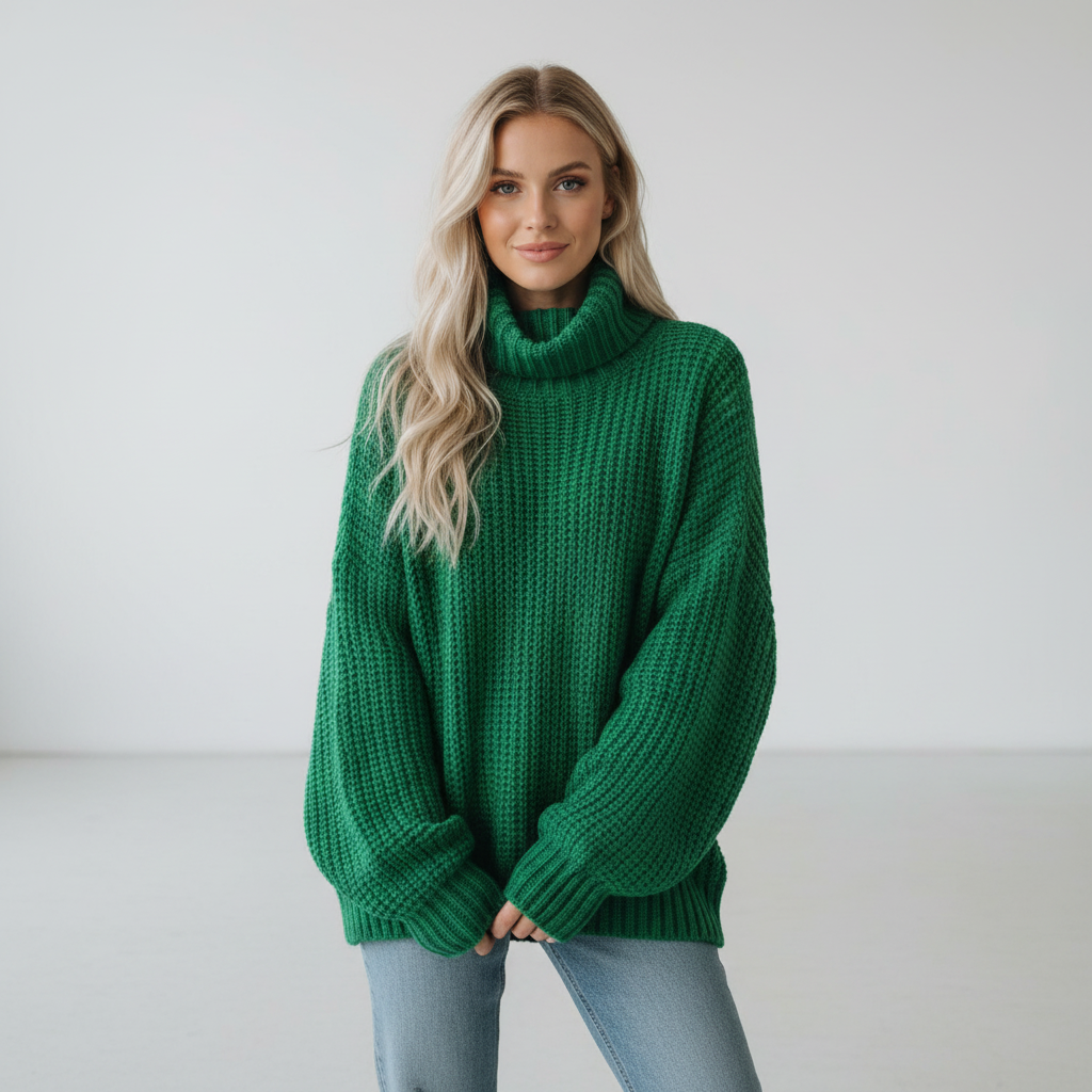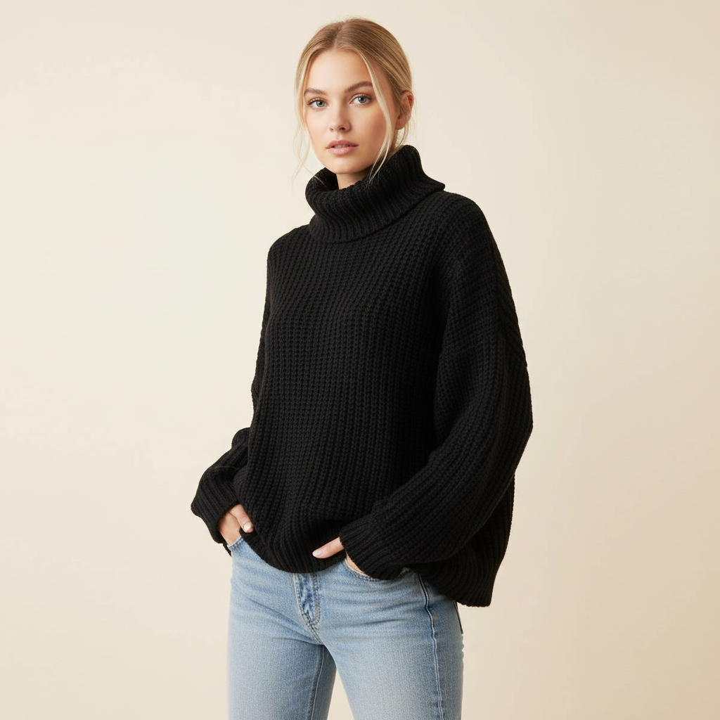 Dit ontwerp is gemaakt voor koude dagen waarop comfort en stijl hand in hand gaan. De oversized vorm voelt heerlijk ontspannen aan en de hoge col zorgt voor extra warmte, terwijl de grove knit een luxe en eigentijdse look geeft. Ideaal voor dagelijks gebruik, van een casual dag buitenshuis tot een ontspannen moment thuis.
