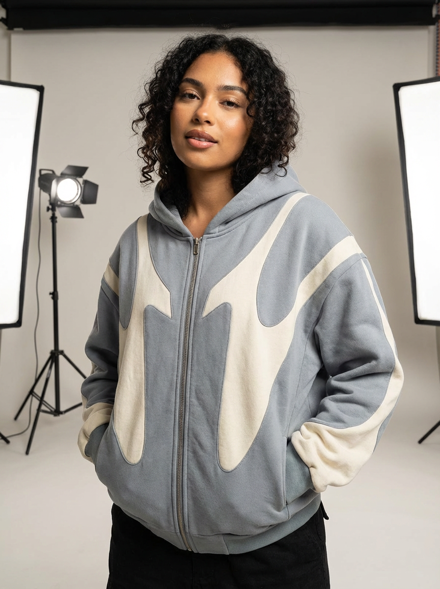 ✓ Loose fit pasvorm – Valt ruim en nonchalant voor een relaxte, oversized look ✓ Zachte polyester stof – Voelt soepel en comfortabel aan op de huid ✓ Contrastpanelen – Geven de hoodie een opvallende, moderne streetwear uitstraling