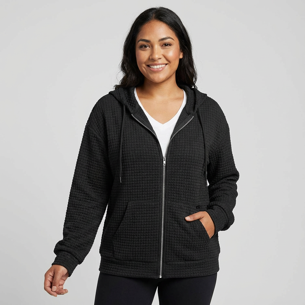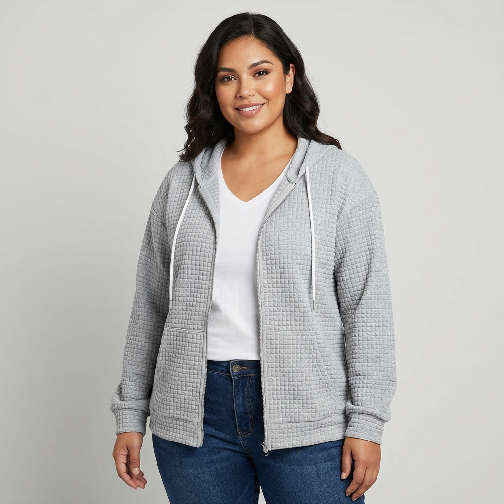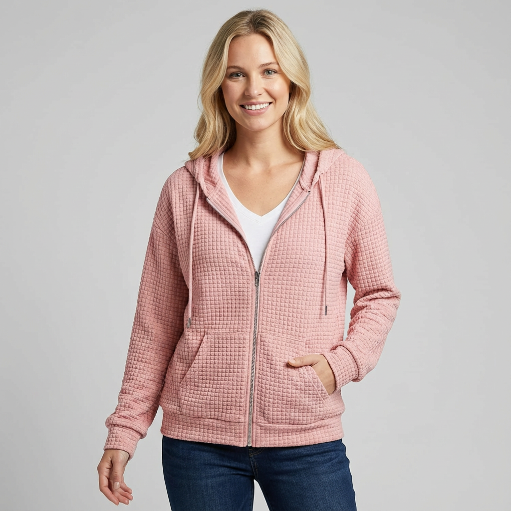Zacht dames vest met rits en capuchon in wafelstructuur