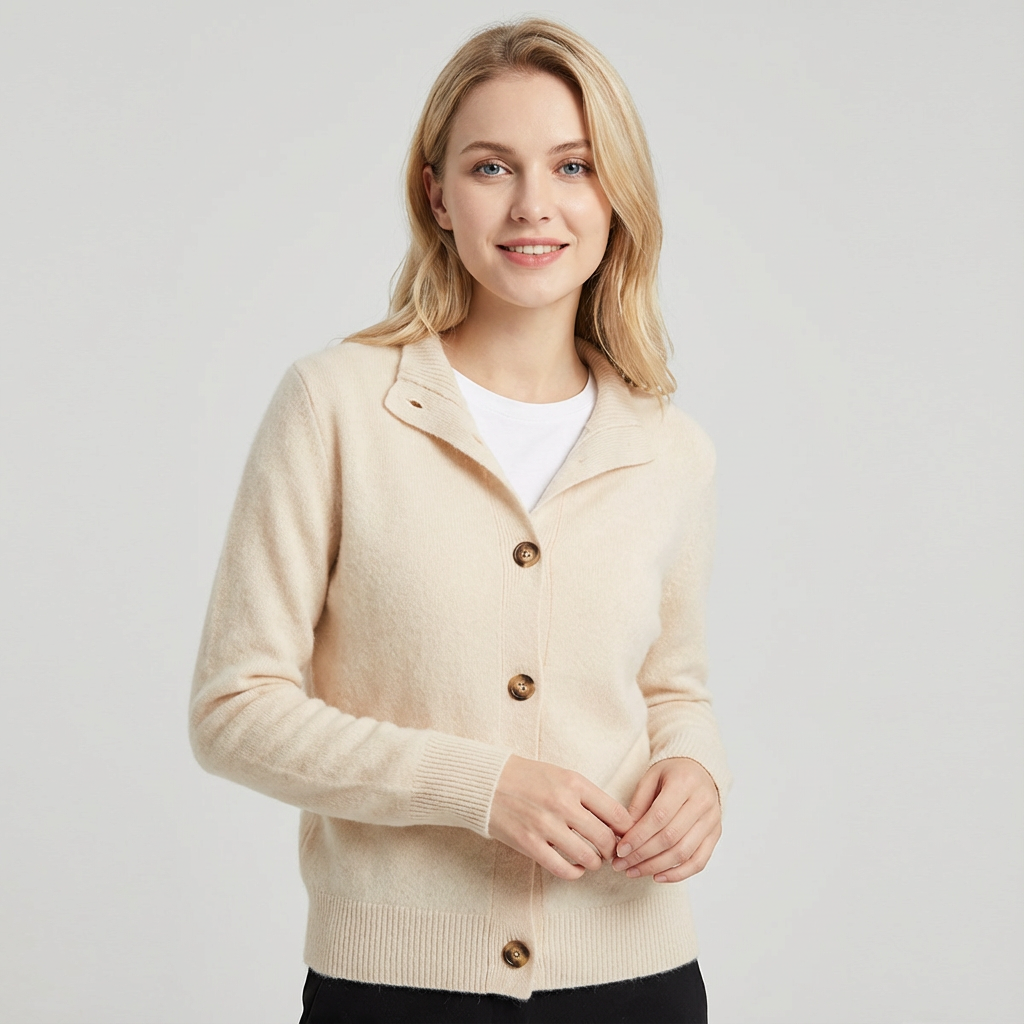Zacht gebreid damesvest met knoopsluiting