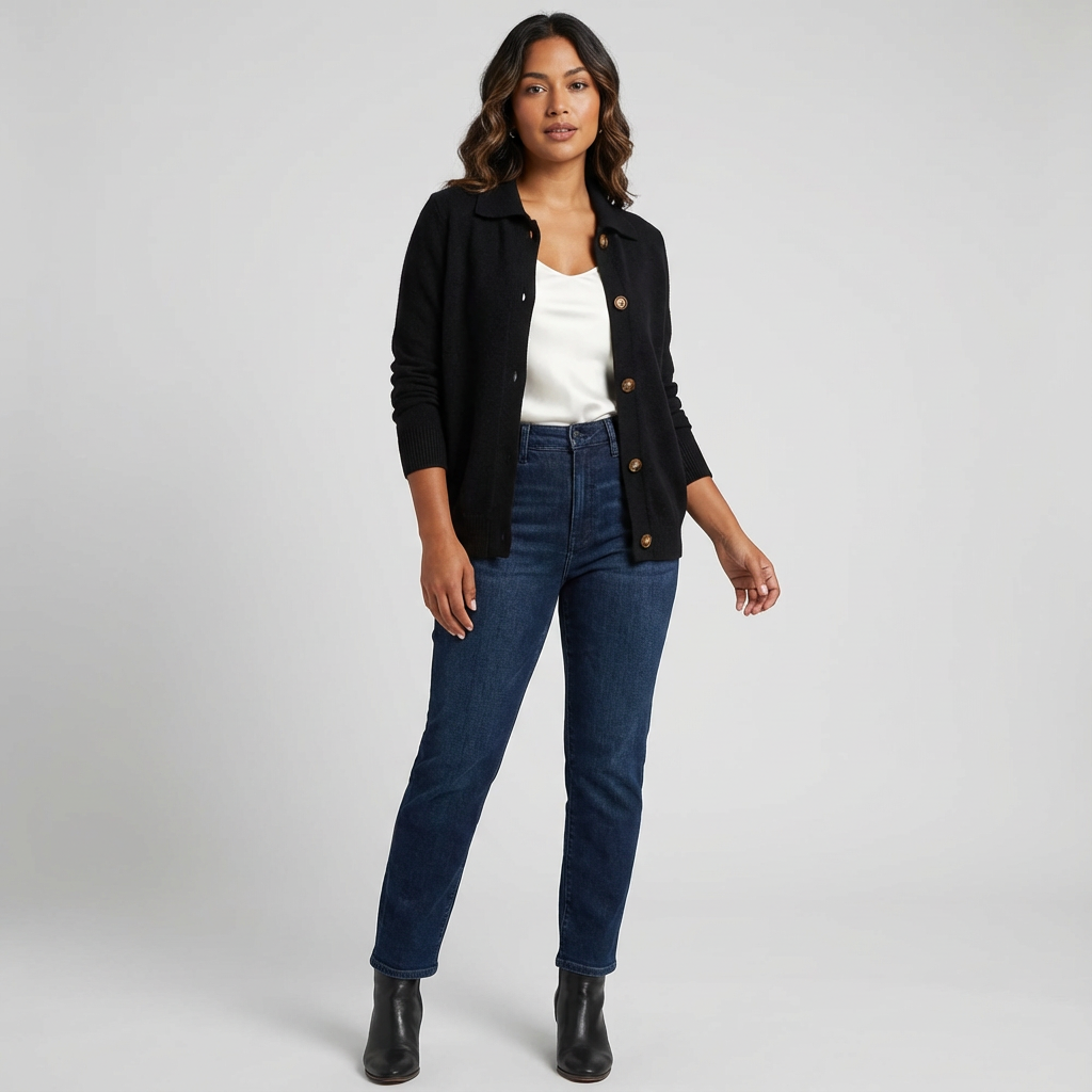 ✓ Zacht gebreid materiaal – voelt comfortabel en warm aan zonder zwaar te zijn ✓ Knoopsluiting voorzijde – klassiek detail met een elegante uitstraling ✓ Tijdloos ontwerp – blijft stijlvol, ongeacht trends ✓ Comfortabele pasvorm – draagt prettig en beweegt soepel met je mee ✓ Veelzijdig te combineren – mooi op jeans, pantalon of over een blouse