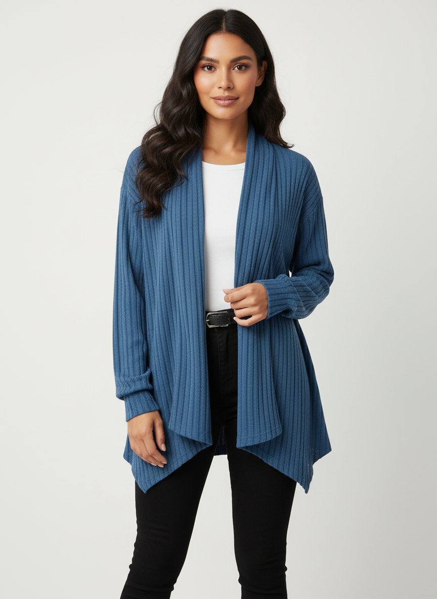 • Zachte ribgebreide stof: Voelt comfortabel en licht aan, ideaal voor dagelijks gebruik • Open voorzijde: Zorgt voor een elegante, losvallende uitstraling • Relaxte pasvorm: Draagt prettig en flatteert zonder te knellen • Veelzijdig ontwerp: Makkelijk te combineren met jeans, broeken of jurken