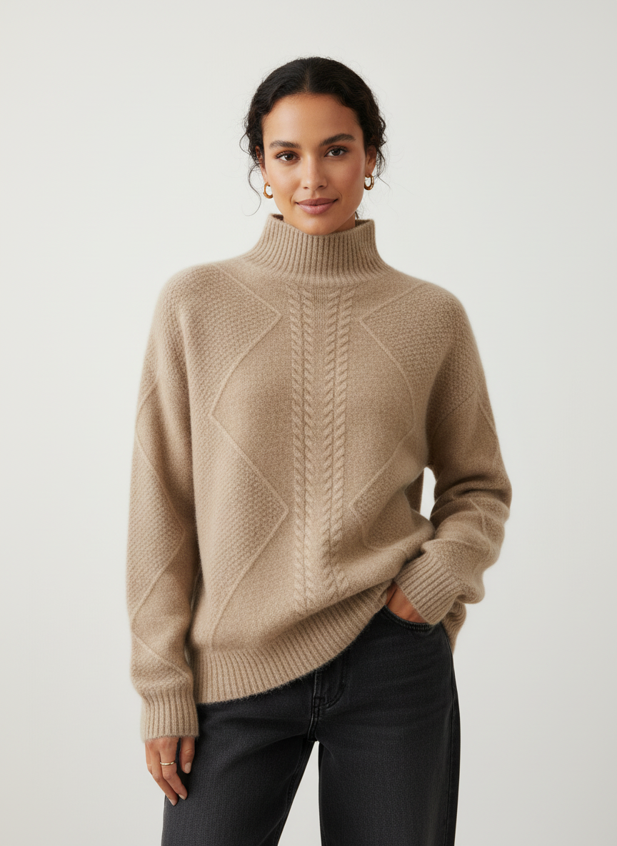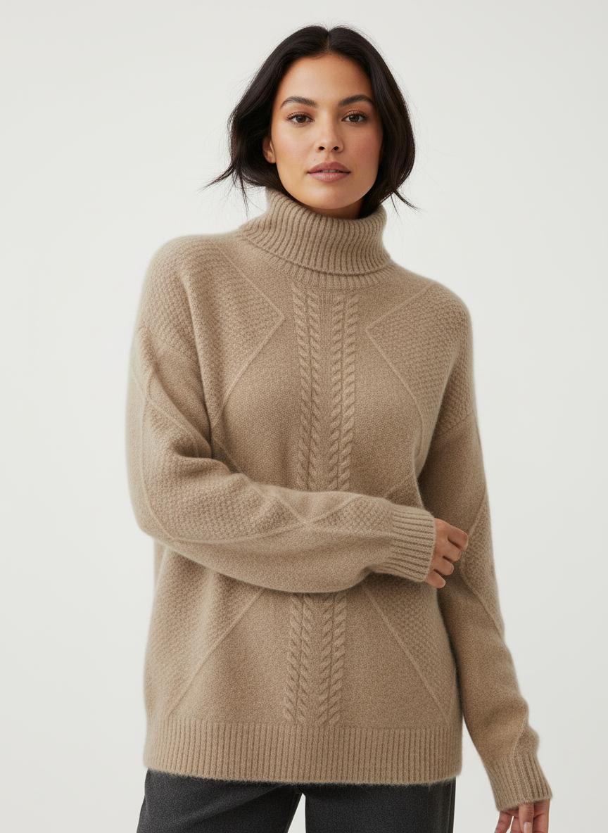 Een verfijnde knit die warmte en elegantie moeiteloos samenbrengt