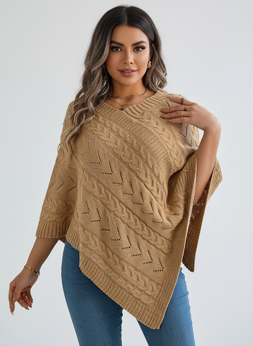 Zachte gebreide dames poncho – Novena