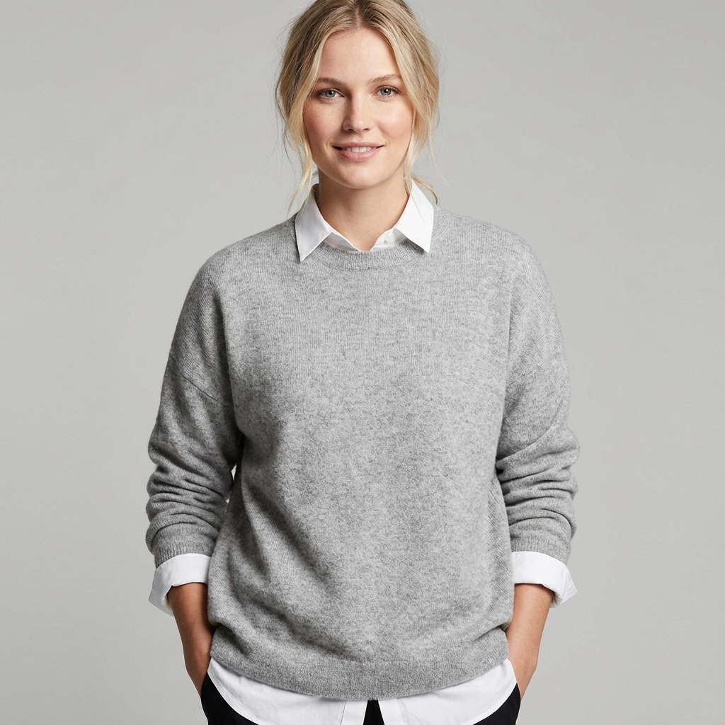Zachte minimalistische dames trui met ronde hals en lange mouwen