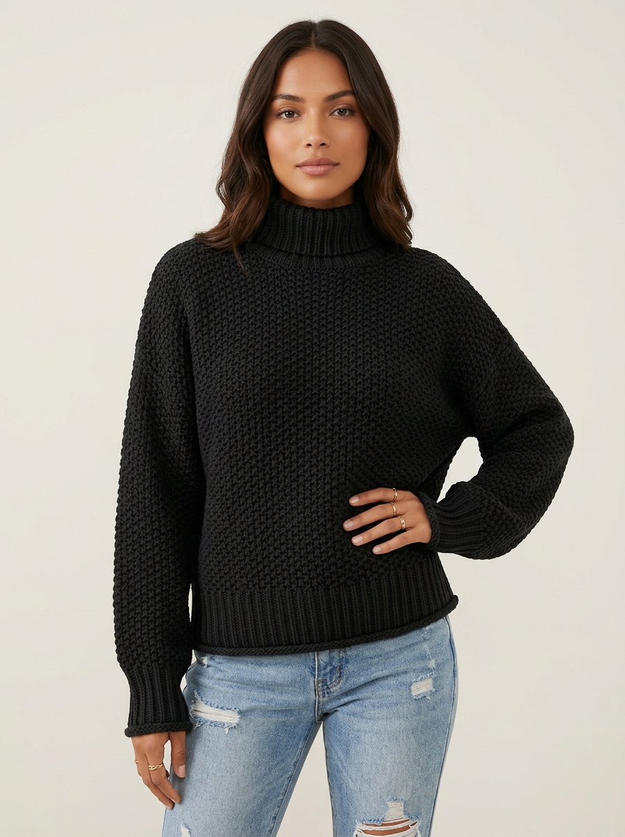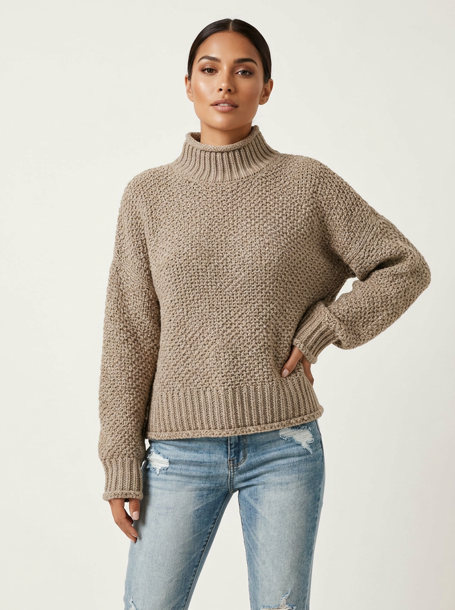 Comfortabele gebreide trui met hoge hals en relaxte pasvorm