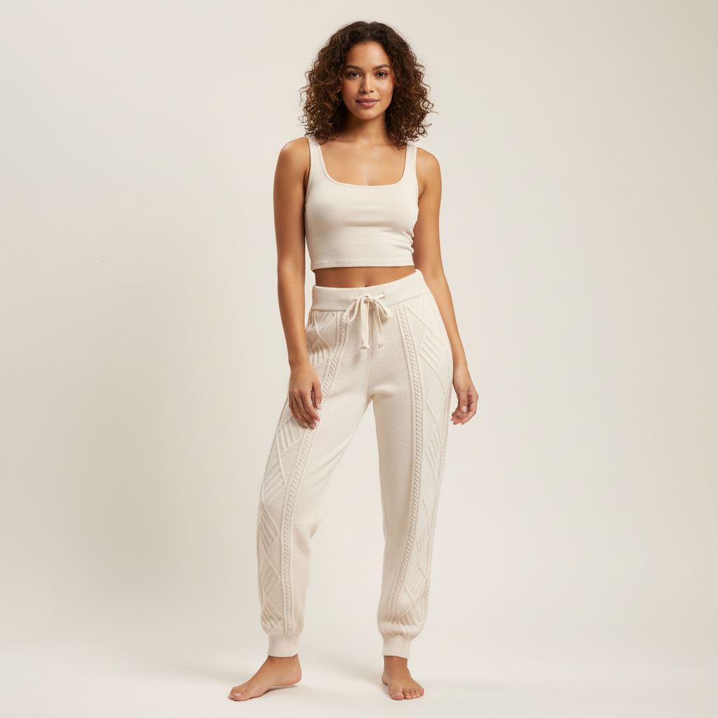Deze jogger broek combineert het ultieme comfort van knitwear met een stijlvolle, verzorgde look. De zachte stof voelt aangenaam aan en valt soepel langs het lichaam, waardoor je een ontspannen maar elegante uitstraling krijgt. Perfect voor rustige dagen thuis, casual momenten buitenshuis of een stijlvolle travel look.