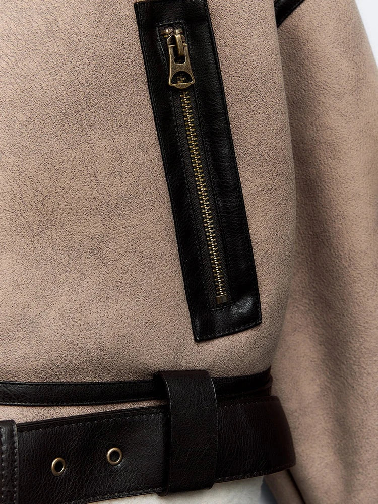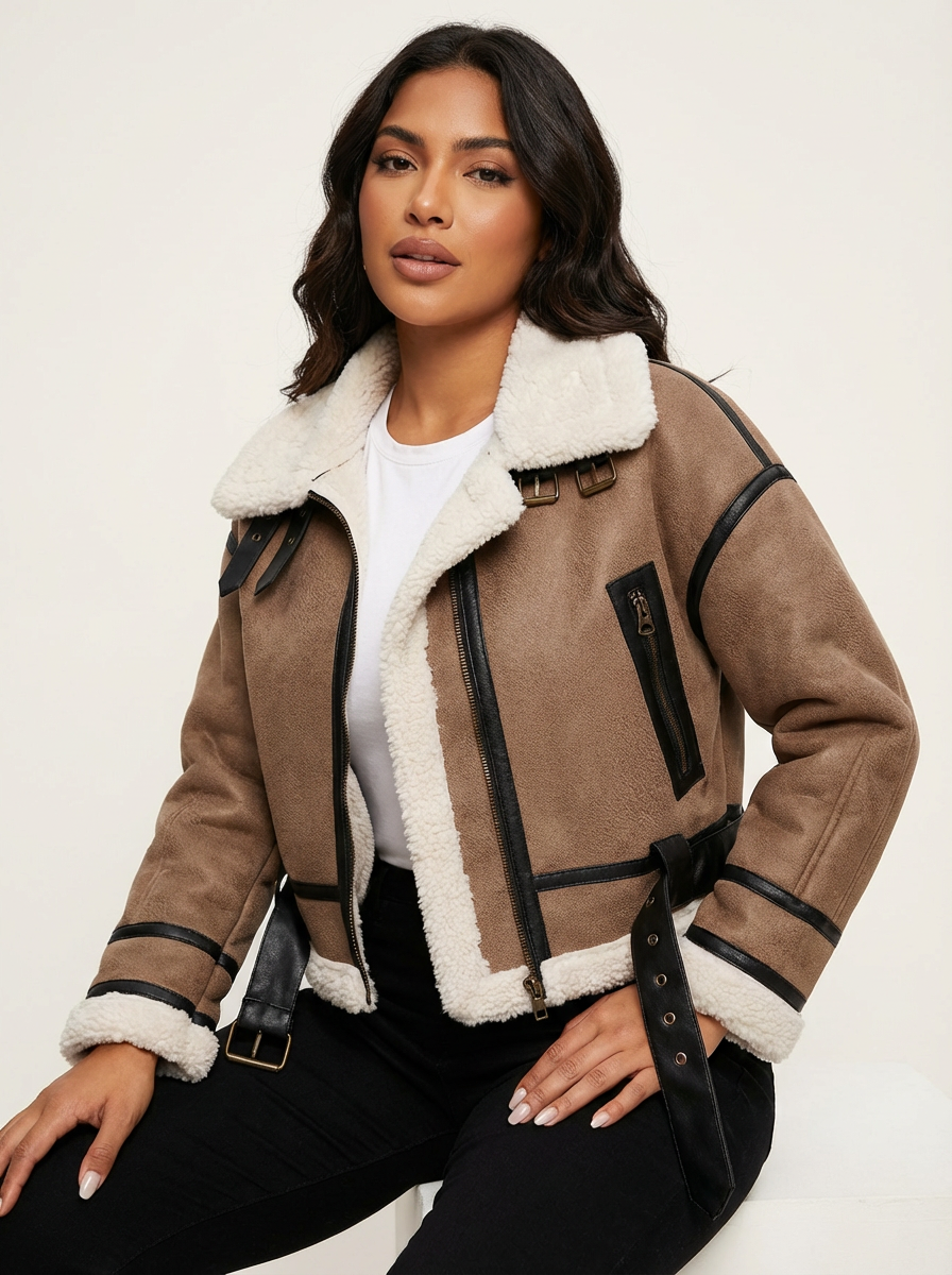Cropped sherpa bikerjas met riemdetail – Valentina