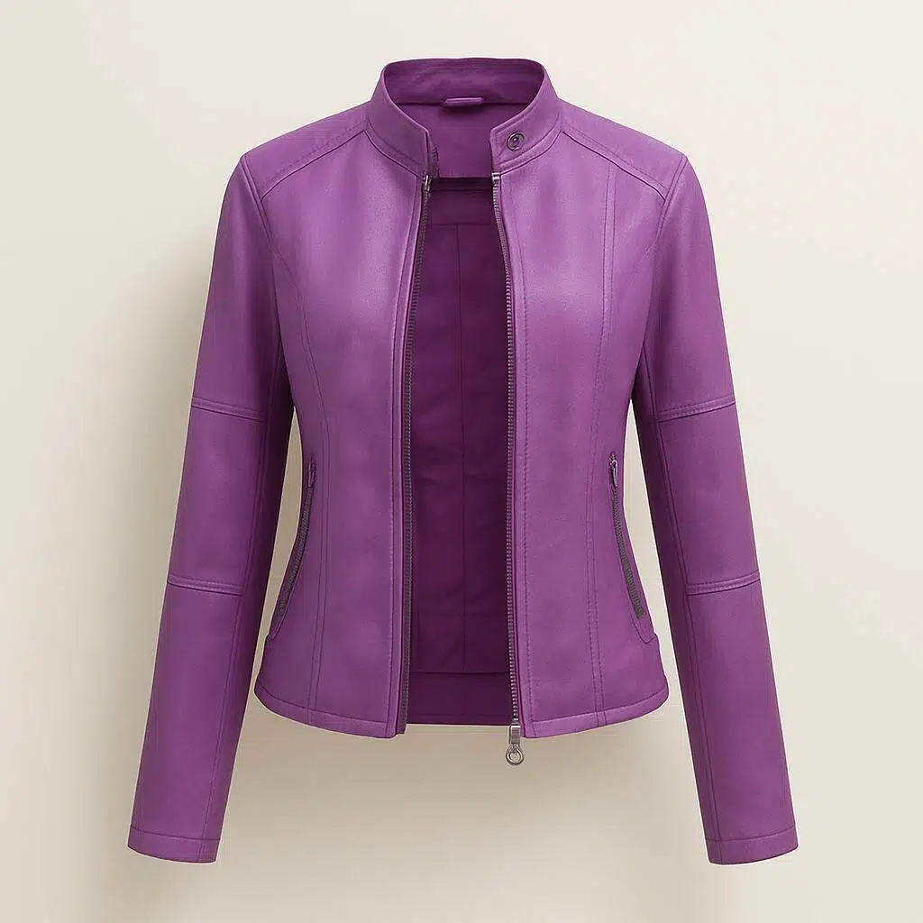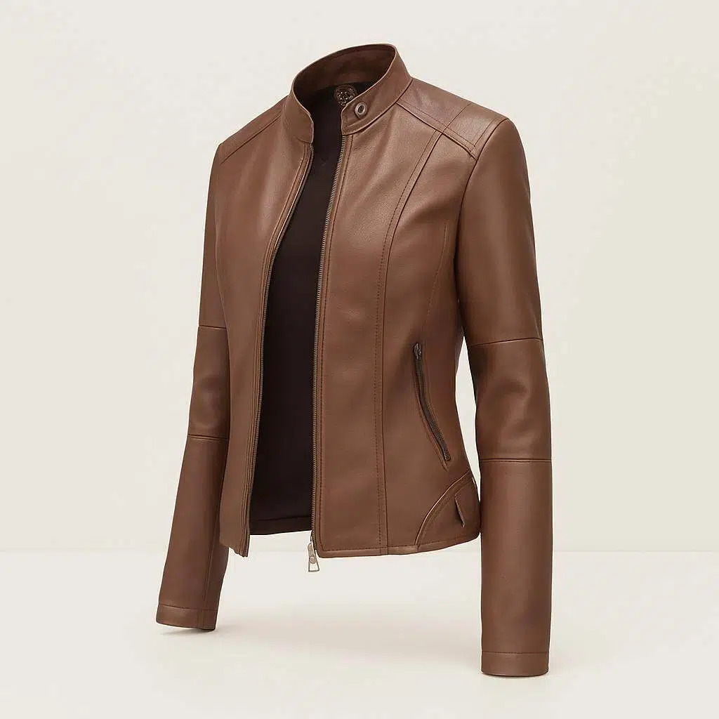 Dames imitatie-leren jack met mao-kraag