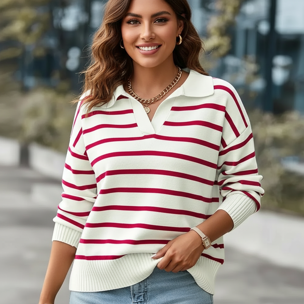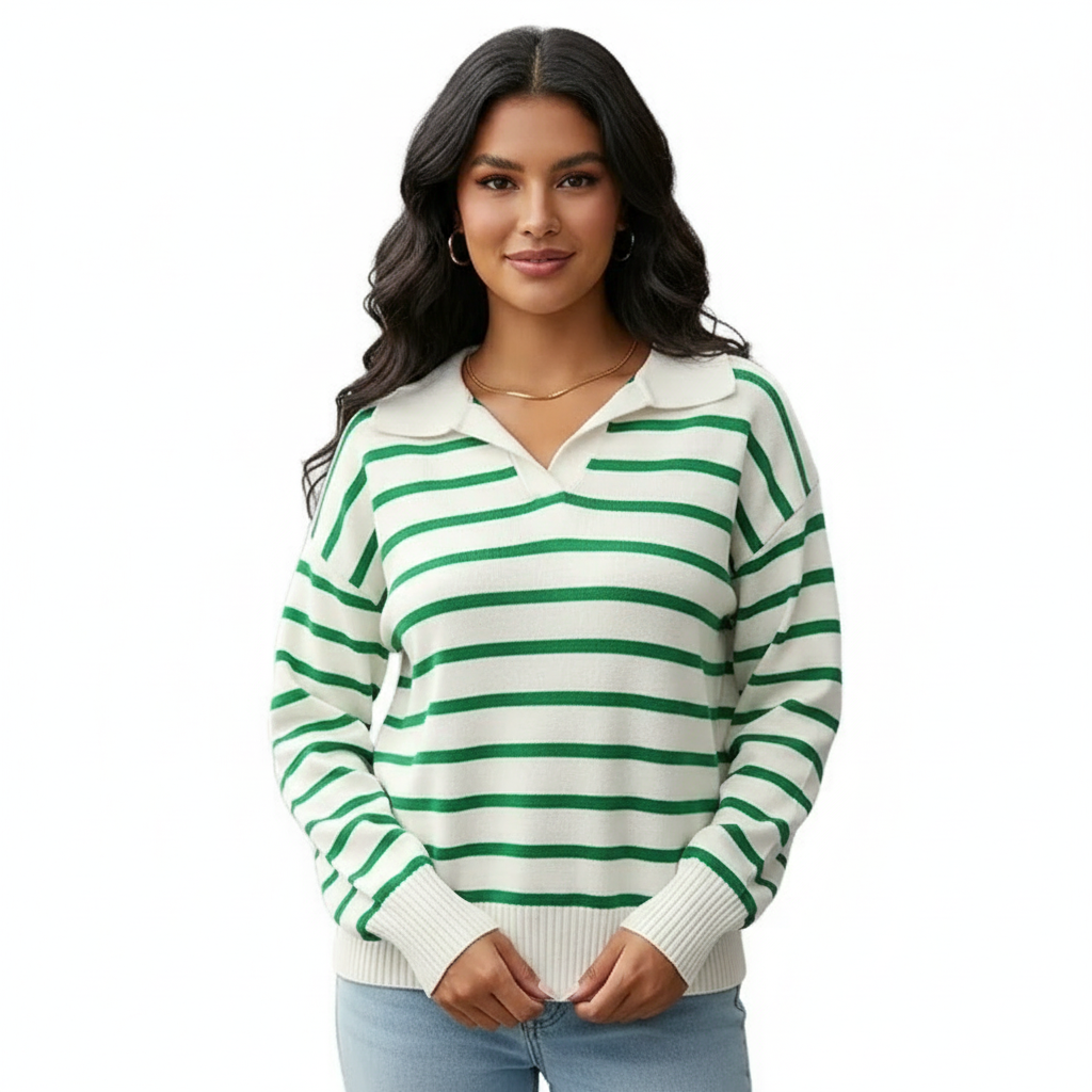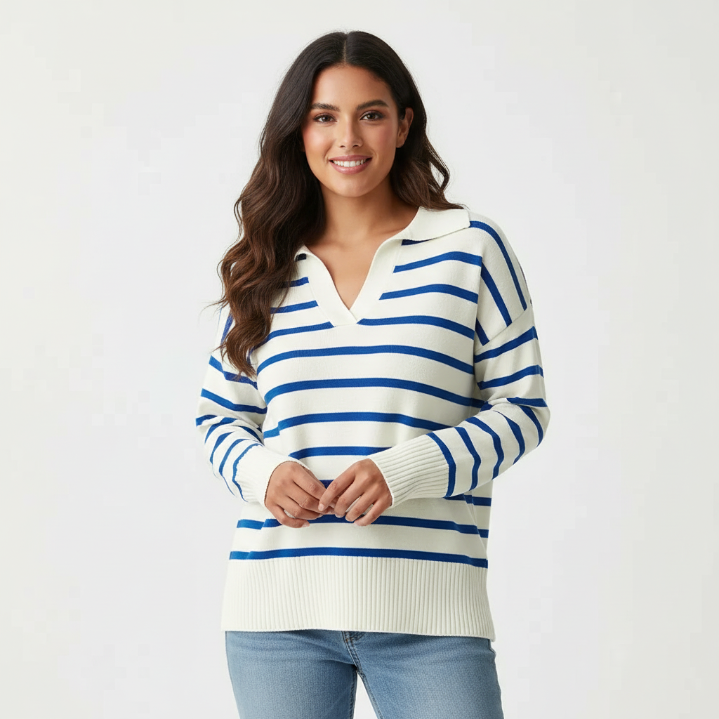 Gestreepte dames trui met kraag – Maëlys