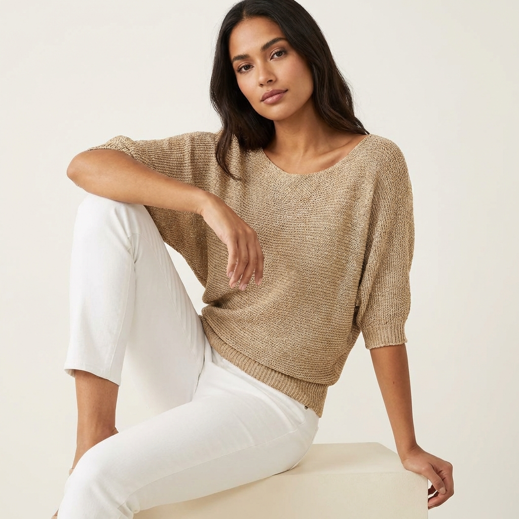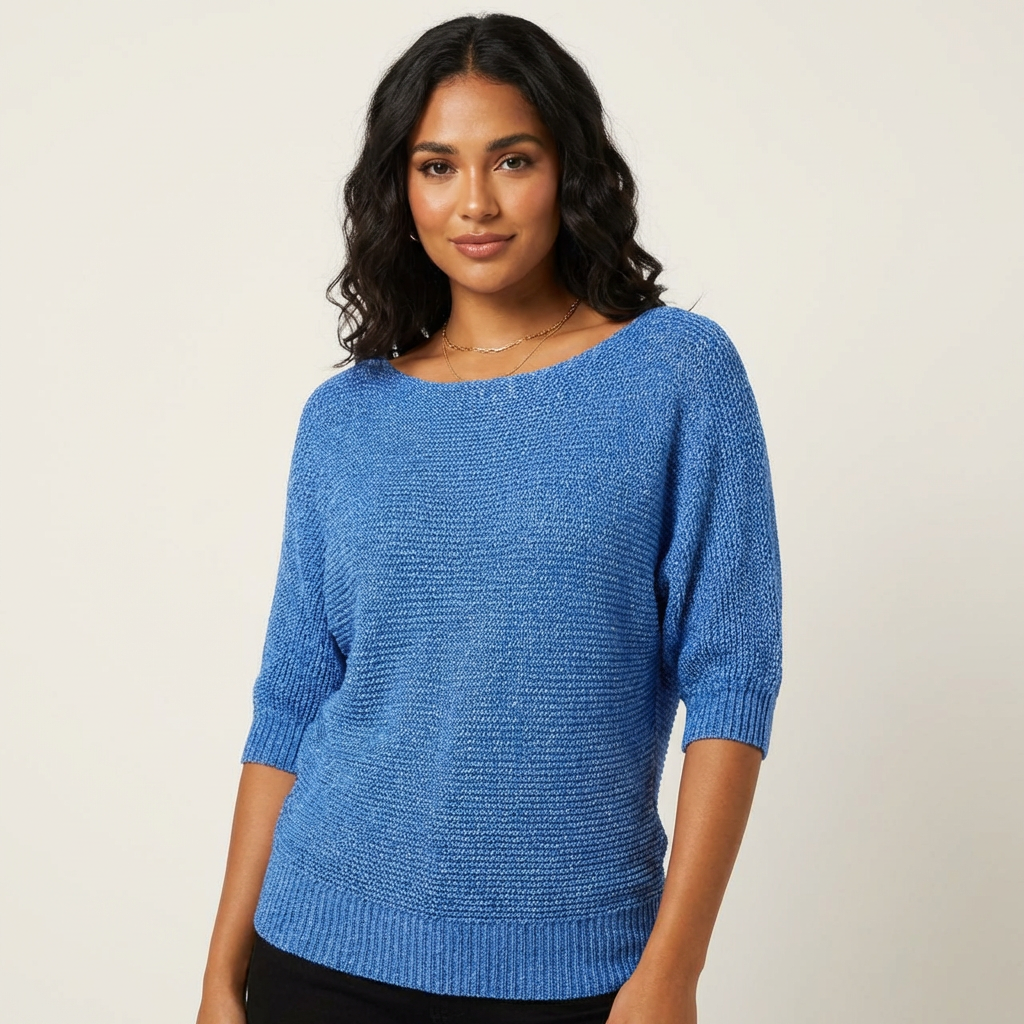 Deze luchtig gebreide trui is ontworpen voor vrouwen die houden van een relaxte maar stijlvolle uitstraling. De soepele stof voelt zacht aan op de huid en valt losjes om het lichaam, terwijl de driekwart mouwen zorgen voor een vrouwelijke en speelse touch. De subtiele boothals geeft het ontwerp een verfijnde uitstraling, perfect voor zowel casual dagen als een verzorgde, dagelijkse look.