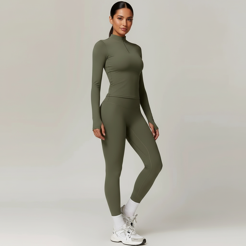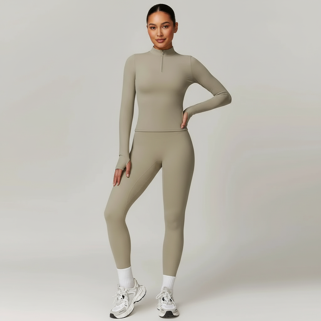 • Top met korte rits: Geeft een sportieve uitstraling en maakt de look flexibel en praktisch