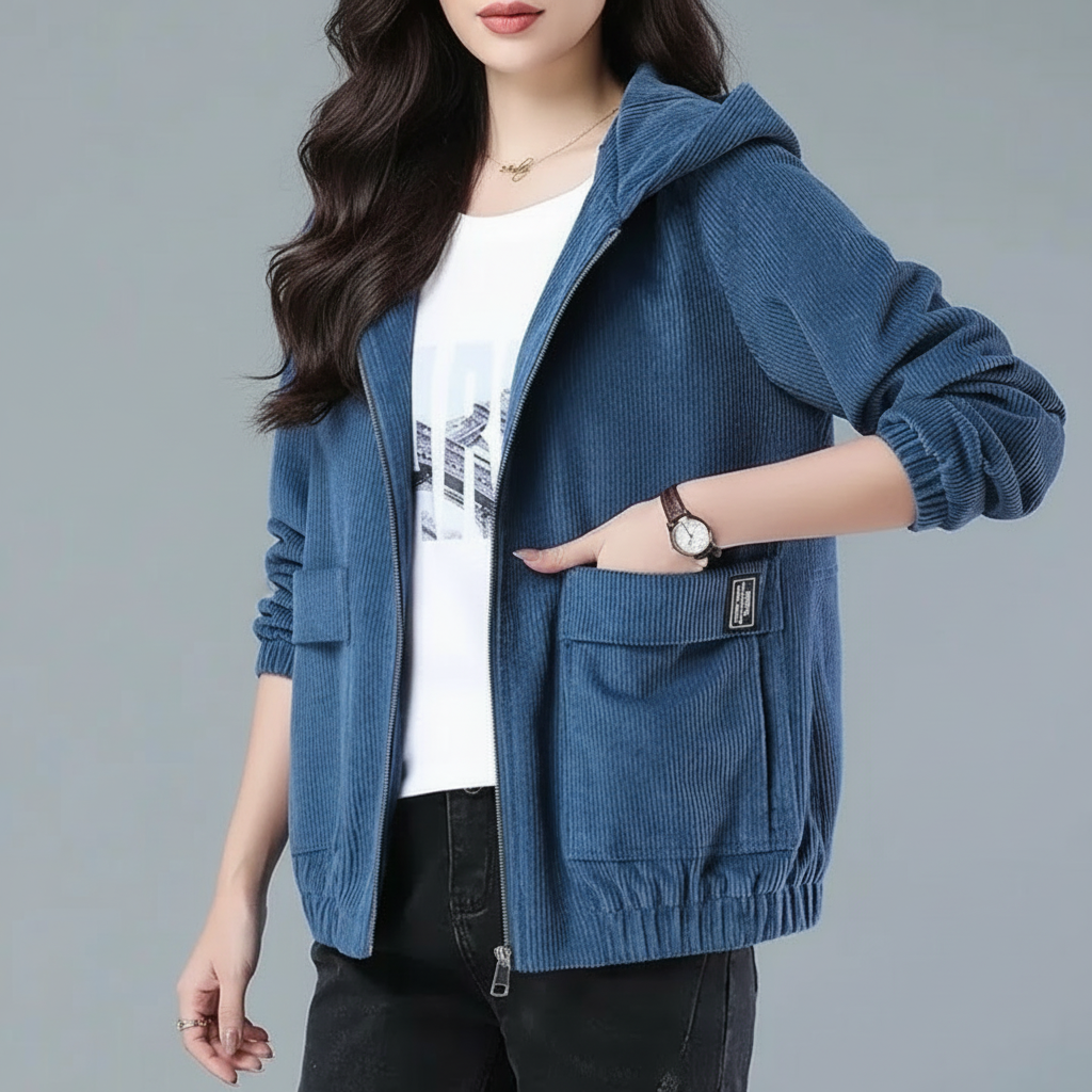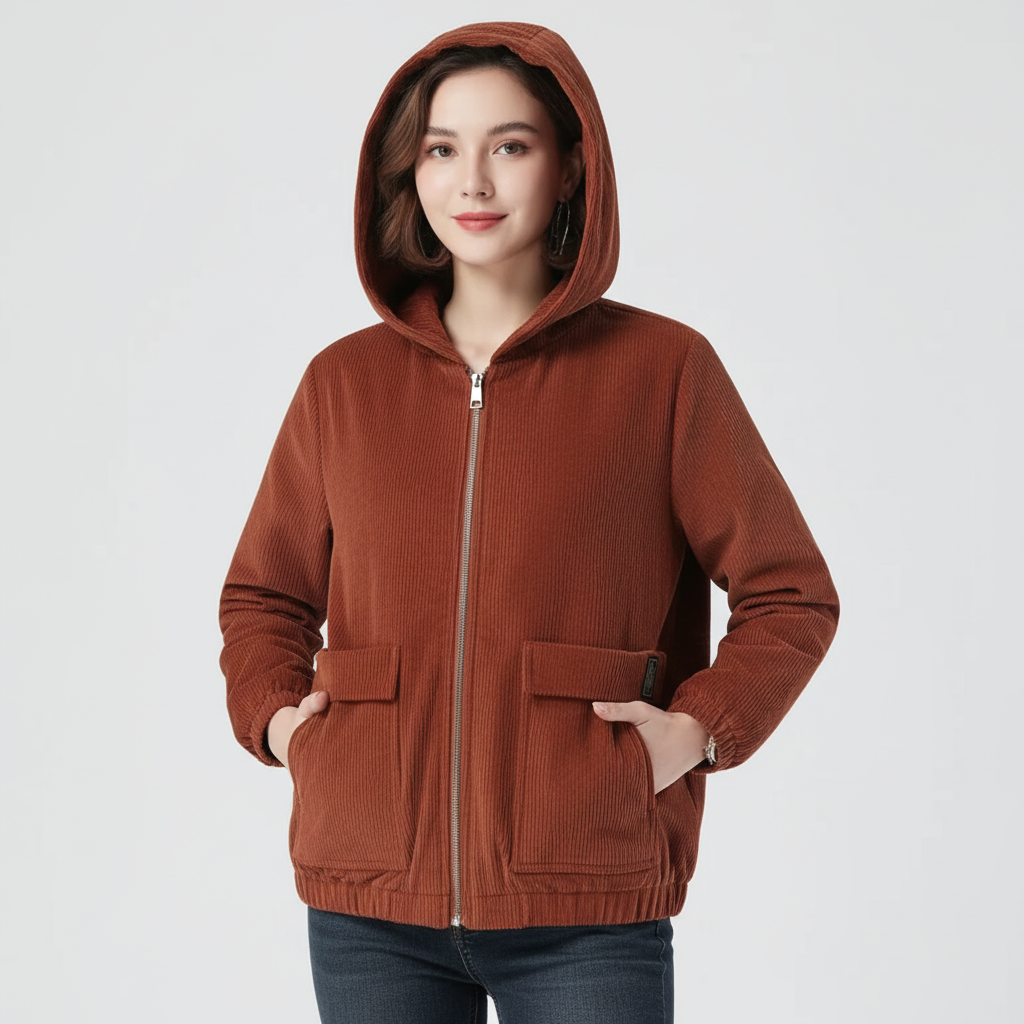 Ribfluwelen dames jas met capuchon – Mila