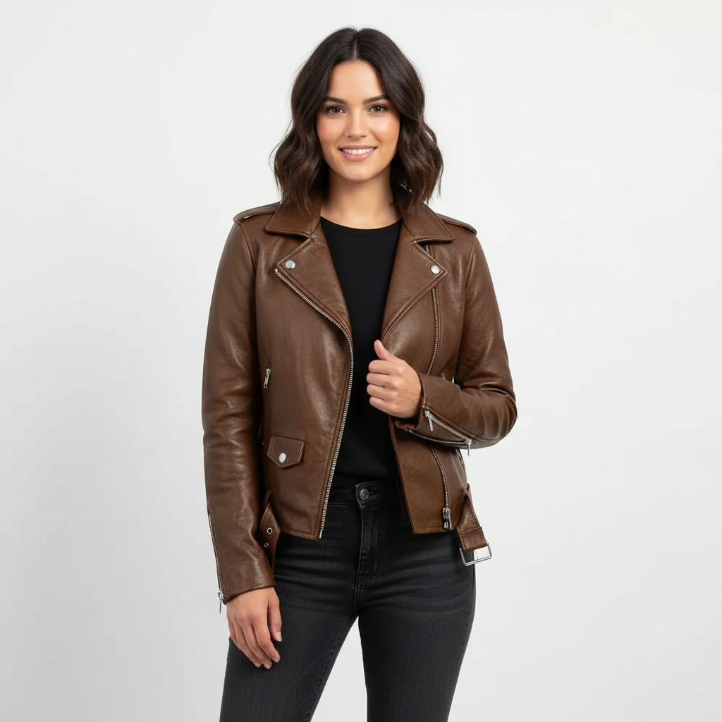 Deze jas is ontworpen voor vrouwen die houden van een krachtige uitstraling met een vrouwelijke touch. Het bikerdesign met asymmetrische ritssluiting en zilverkleurige details geeft direct karakter aan je look, terwijl de aangesloten pasvorm je silhouet prachtig laat uitkomen. Of je haar nu draagt op een jeans met sneakers of over een jurk met hakken, dit ontwerp tilt iedere outfit moeiteloos naar een hoger niveau en geeft je direct die zelfverzekerde, moderne uitstraling.