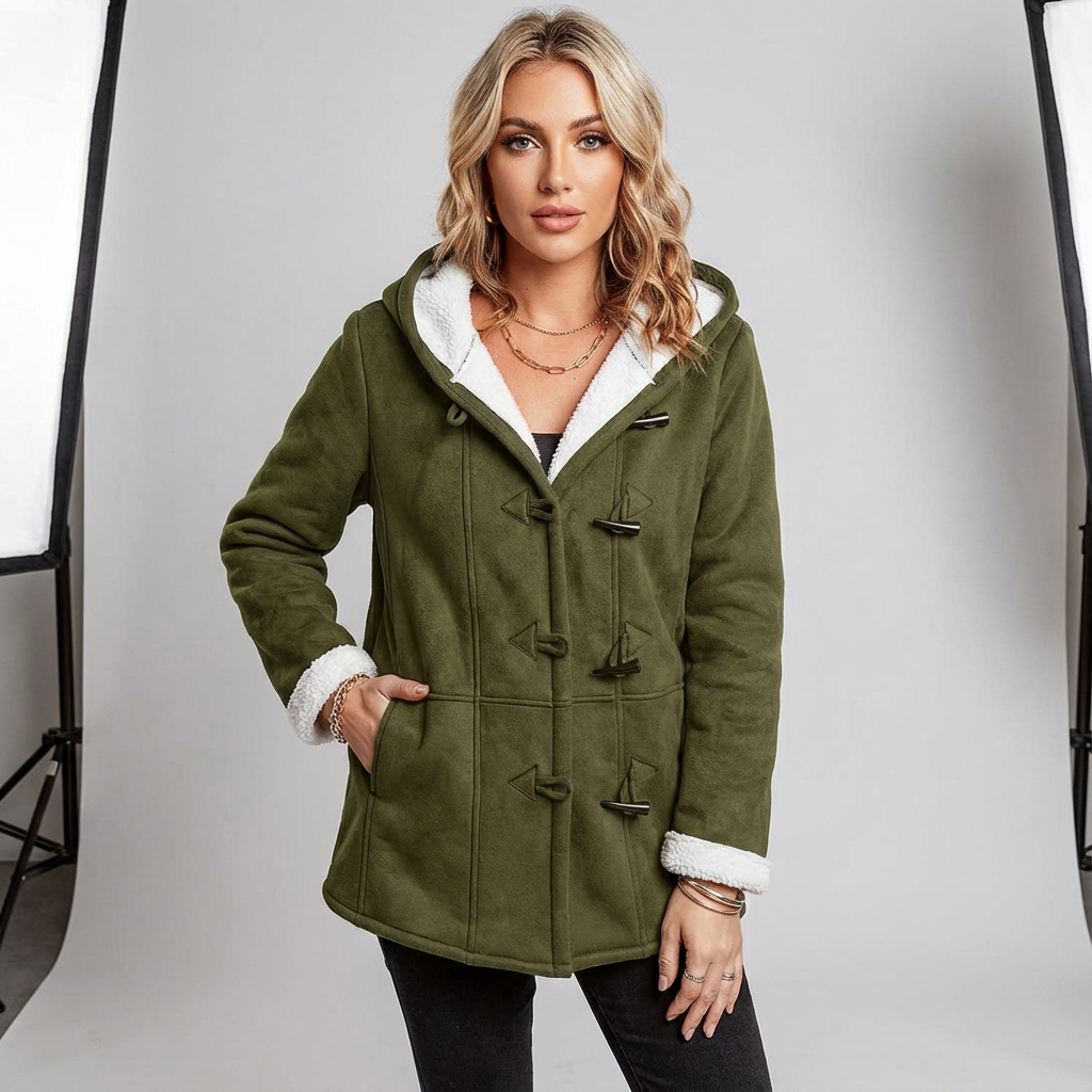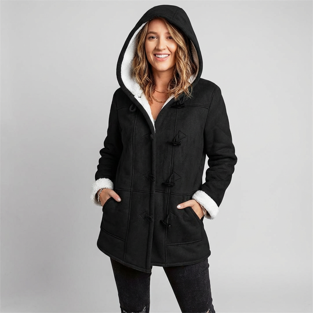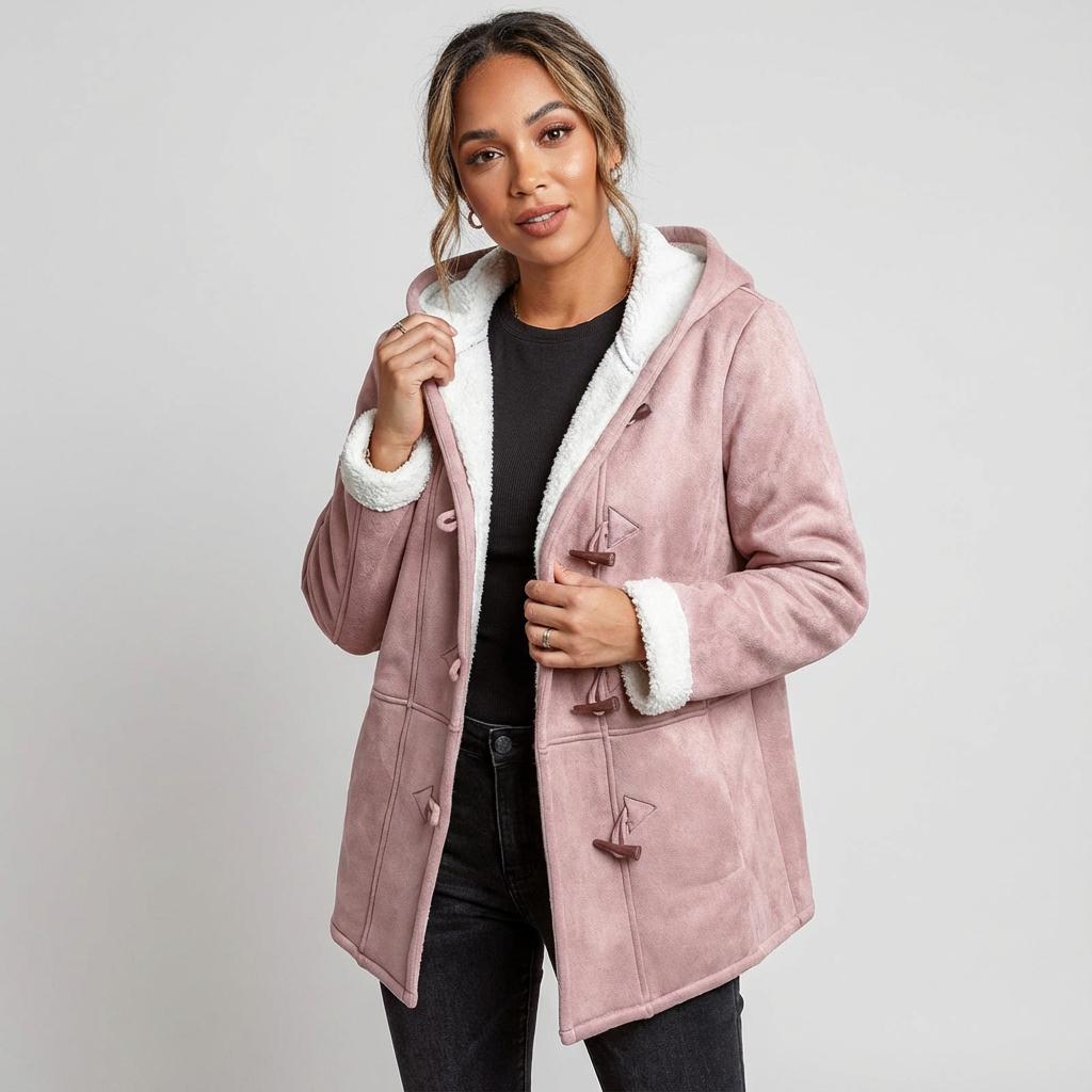 Deze jas heeft een klassieke, vrouwelijke uitstraling met een cosy twist. De zachte binnenvoering en de capuchon zorgen voor een behaaglijk gevoel op koude dagen, terwijl de toggle sluiting en het langere silhouet zorgen voor een stijlvolle, nonchalante look. Perfect voor dagelijks gebruik, wandelingen of een casual winteroutfit.