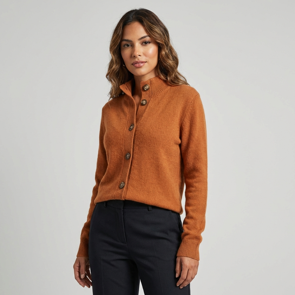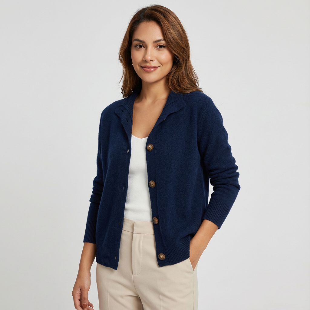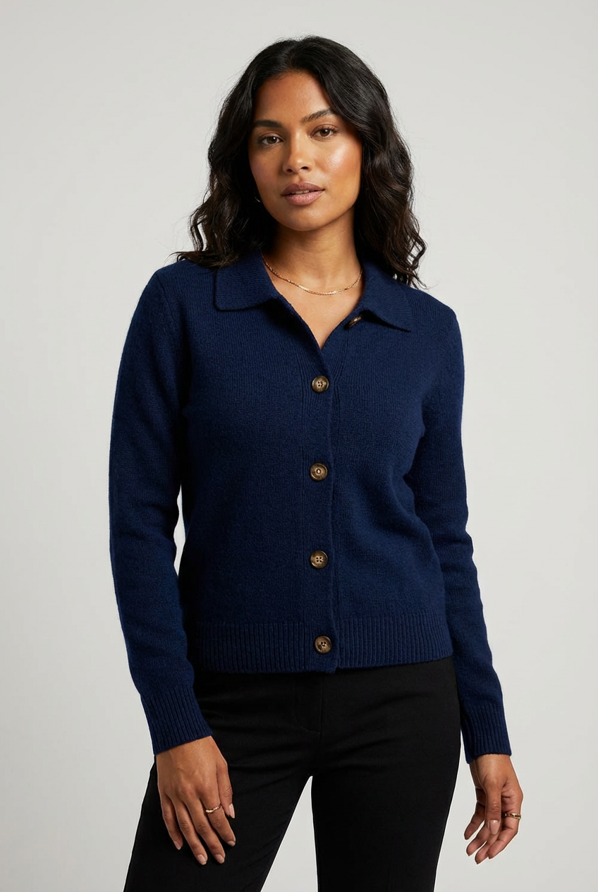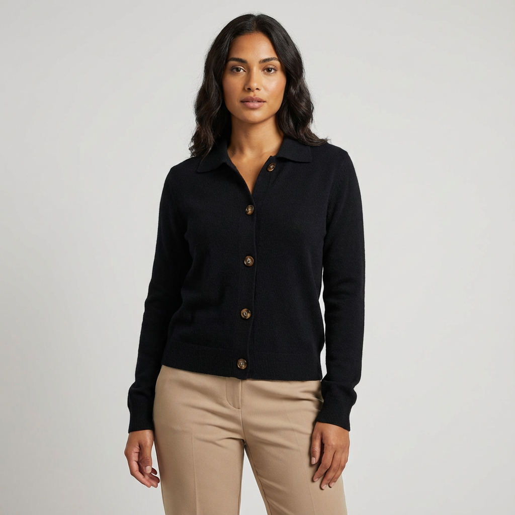 Dit gebreide vest straalt rust, luxe en moeiteloze elegantie uit. De zachte, verfijnde knit voelt comfortabel aan op de huid en valt soepel langs het lichaam. De klassieke knoopsluiting en subtiele kraag geven het ontwerp een tijdloze uitstraling die zowel casual als verzorgd gedragen kan worden. Een veelzijdig item dat je seizoen na seizoen blijft pakken.