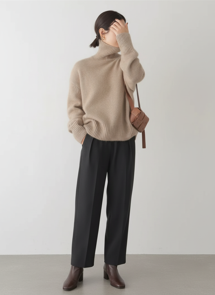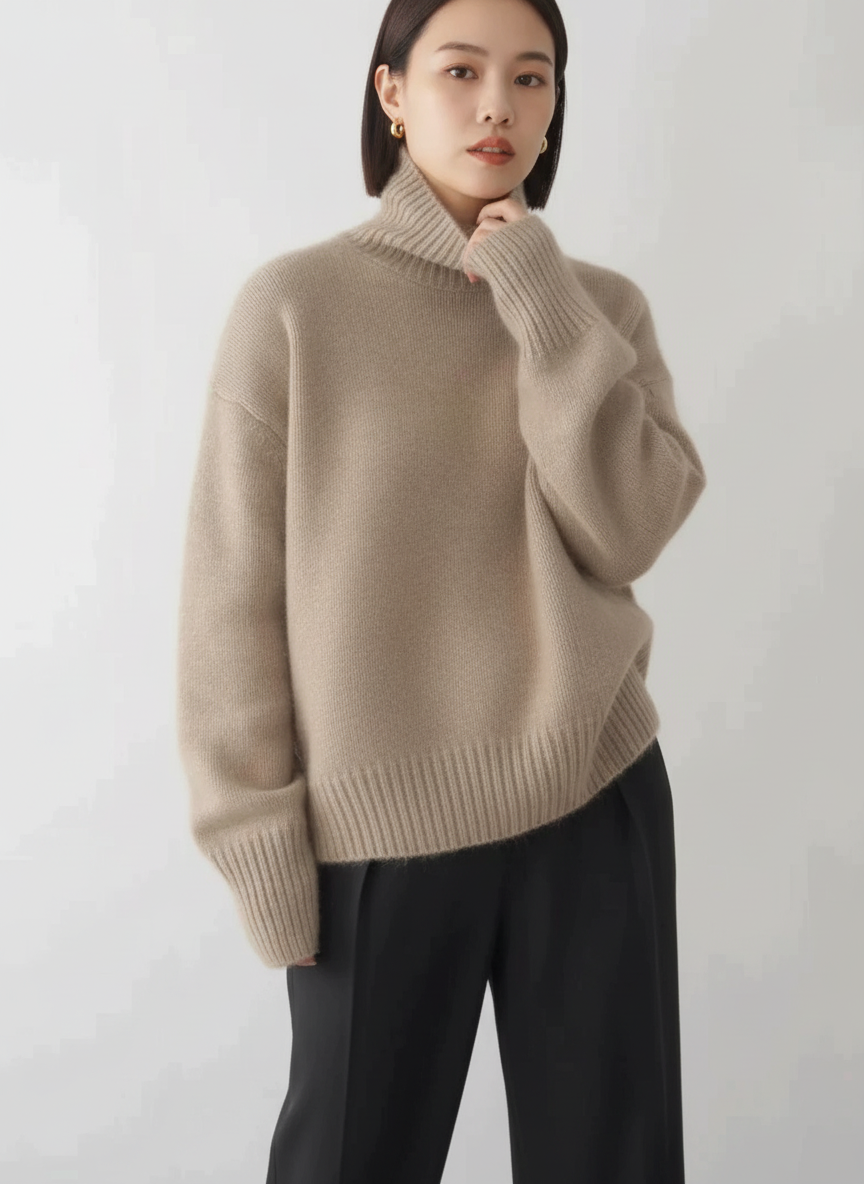 Deze coltrui is ontworpen voor vrouwen die houden van een minimalistische, luxe uitstraling zonder in te leveren op comfort. De zachte knit, losse pasvorm en hoge col zorgen voor een ontspannen maar verfijnde look. Ideaal voor koude dagen waarop je er moeiteloos stijlvol uit wilt zien, zowel casual als gekleed. Een tijdloos ontwerp dat seizoen na seizoen relevant blijft.
