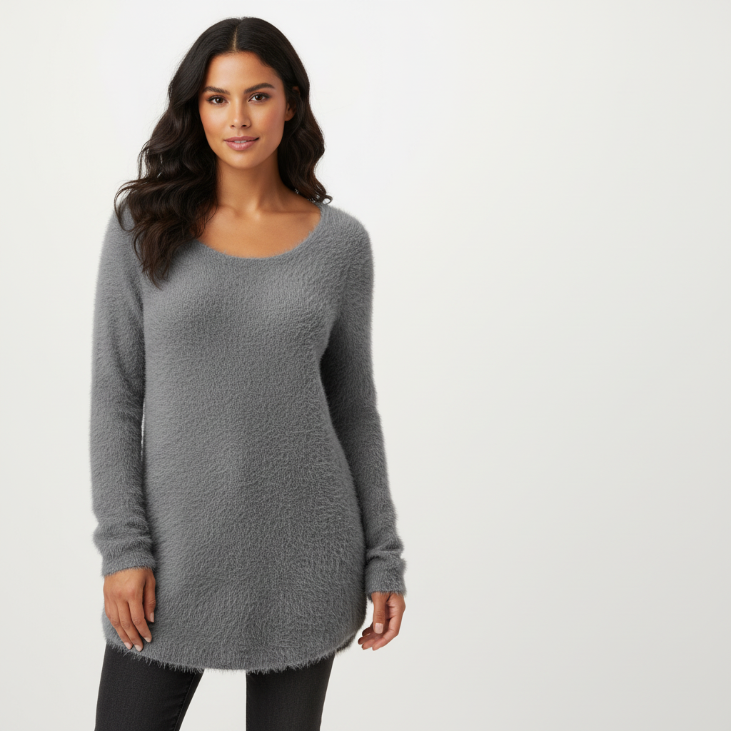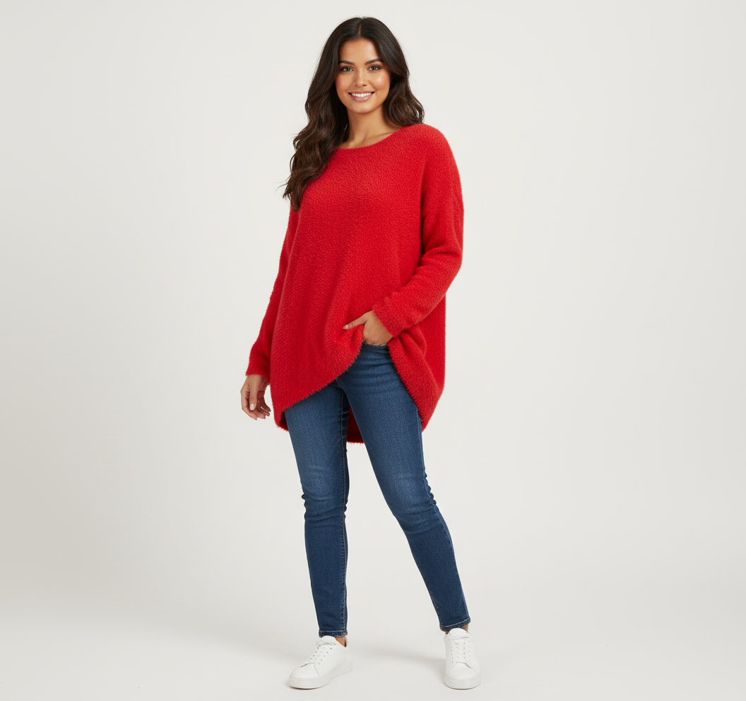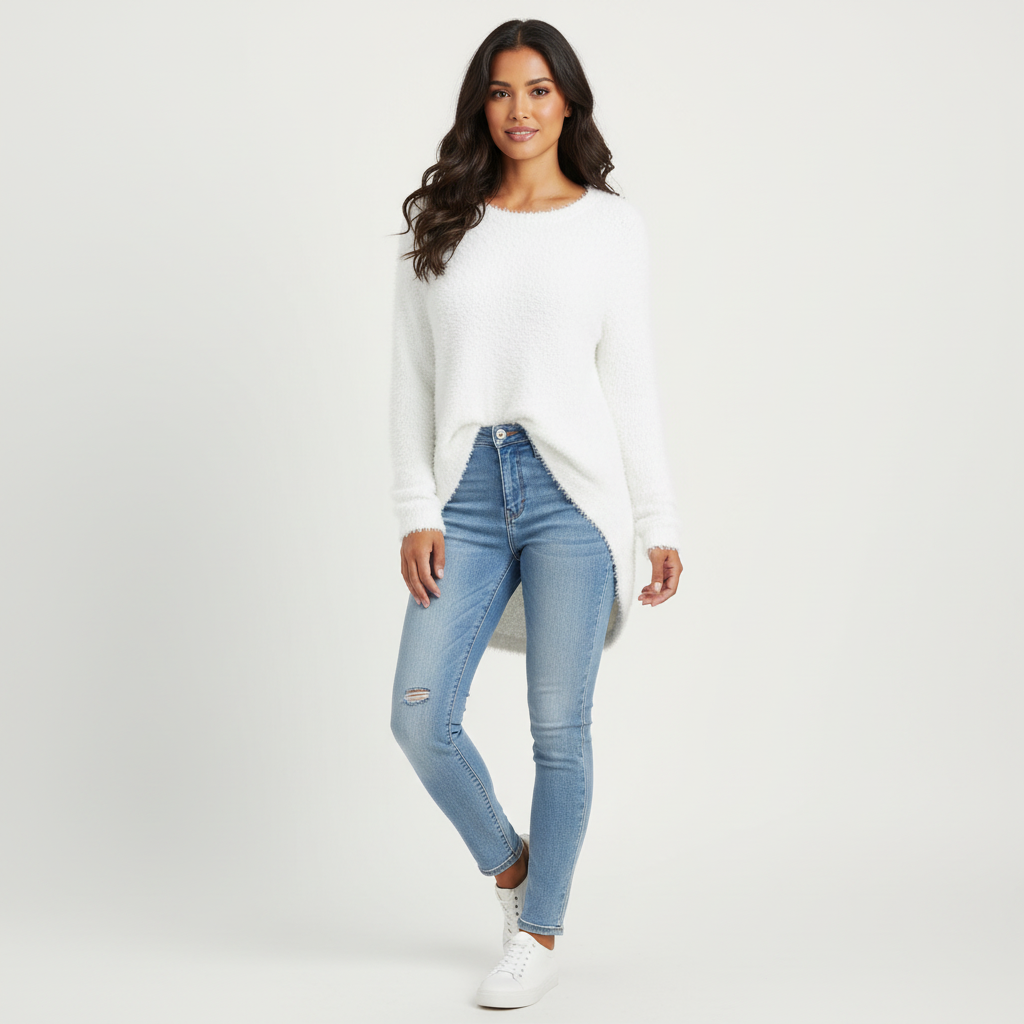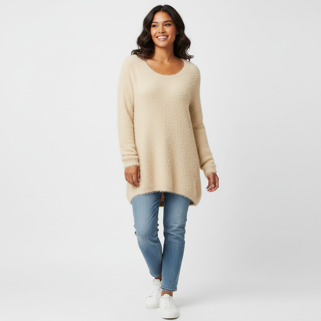 Deze lange trui is gemaakt voor dagen waarop je je warm, zacht en toch stijlvol wilt voelen. De fluffy textuur voelt heerlijk knuffelzacht aan en omhult je met subtiele warmte. De iets langere lengte zorgt voor een flatterend silhouet en geeft een speelse, nonchalante uitstraling. Perfect om te dragen met jeans, leggings of als comfy statement piece tijdens frisse dagen.