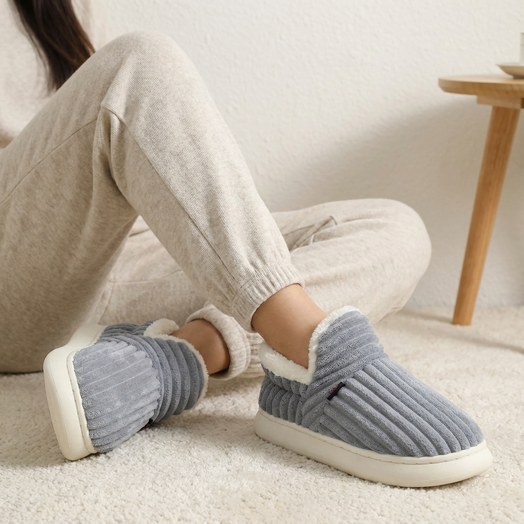 Deze comfortabele pantoffels zijn ontworpen voor ontspannen momenten thuis, zonder in te leveren op uitstraling. De zachte ribstof aan de buitenkant geeft een warme, huiselijke look, terwijl de gevoerde binnenzijde je voeten direct omhult met zachtheid. Ideaal voor rustige ochtenden, lange avonden of een ontspannen dag in huis.