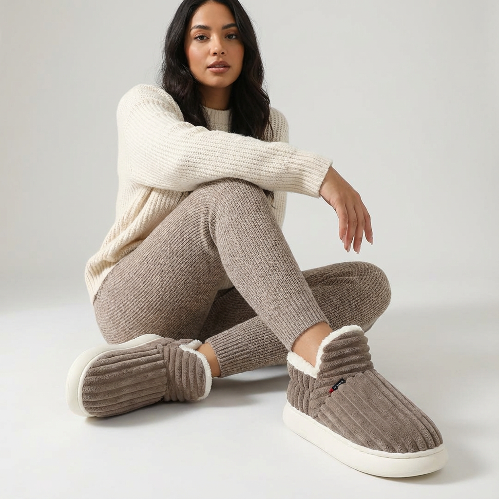 Zachte ribpantoffels met teddy voering